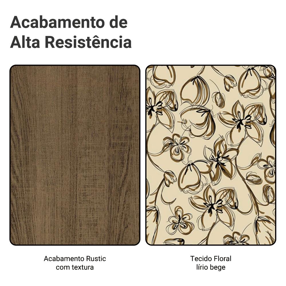 O conjunto de mesa e cadeiras Analu da Madesa vai dar uma nova cara para o seu ambiente.A mesa com pés estruturais é robusta e segura. O espaço disponível acomoda bem até seis pessoas. É uma grande opção tanto para a cozinha quanto para a sala de jantar.As cadeiras são fabricadas em MDF/MDP e possuem encosto de madeira e assento estofado em tecido Floral Lírio Bege, com toque suave e fácil de harmonizar com as mais variadas decorações.O acabamento é no padrão amadeirado Rustic, feito em Pintura Poliéster ecológica de alta resistência, com 7 camadas de proteção resistentes a álcool, água e calor.Imagens meramente ilustrativas. O conjunto é composto pela mesa e seis cadeiras.Itens inclusos:- Uma (1) mesa com 76 cm de altura e tampo em MDP de 136 cm x 75 cm- Seis (6) cadeiras de 89 cm de altura com encosto em madeira e assento estofadoCódigo do produto: MDJA0601185ZLIBObs.: A Madesa não disponibiliza serviço de montagem. O produto segue com manual de instalação e todas as ferragens necessárias para sua montagem.A Madesa se dedica à sustentabilidade com várias iniciativas: temos uma usina própria para gerar energia que abastece uma de nossas fábricas. Selecionamos nossos fornecedores, priorizando aqueles que possuem um compromisso com a sustentabilidade e proteção do meio ambiente. Todo o plástico utilizado no setor produtivo é proveniente de reciclagem e as suas sobras são encaminhadas ao fornecedor que os recicla. Também investimos no desenvolvimento contínuo de nossos colaboradores e em ações educacionais que beneficiem a comunidade.