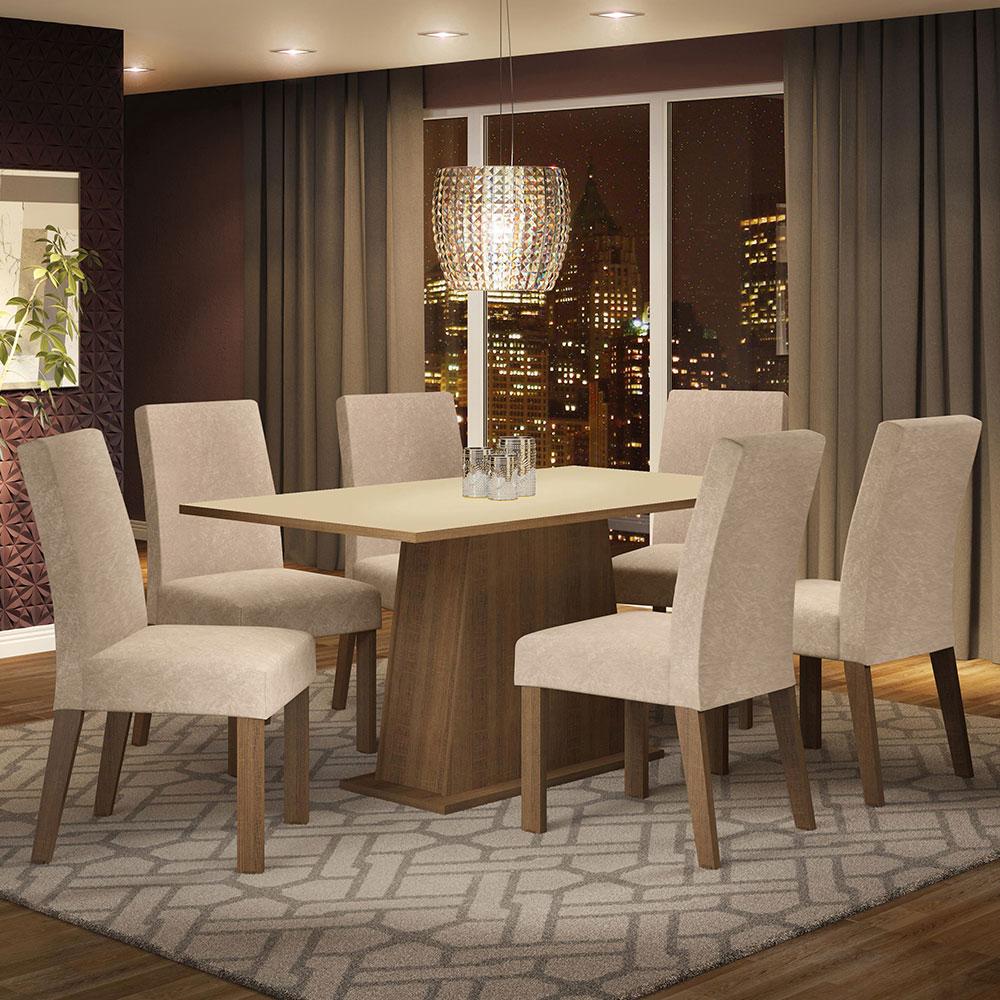 Conjunto Sala de Jantar Madesa Luciana Mesa Tampo de Madeira com 6 Cadeiras - Rustic/Crema/Imperial