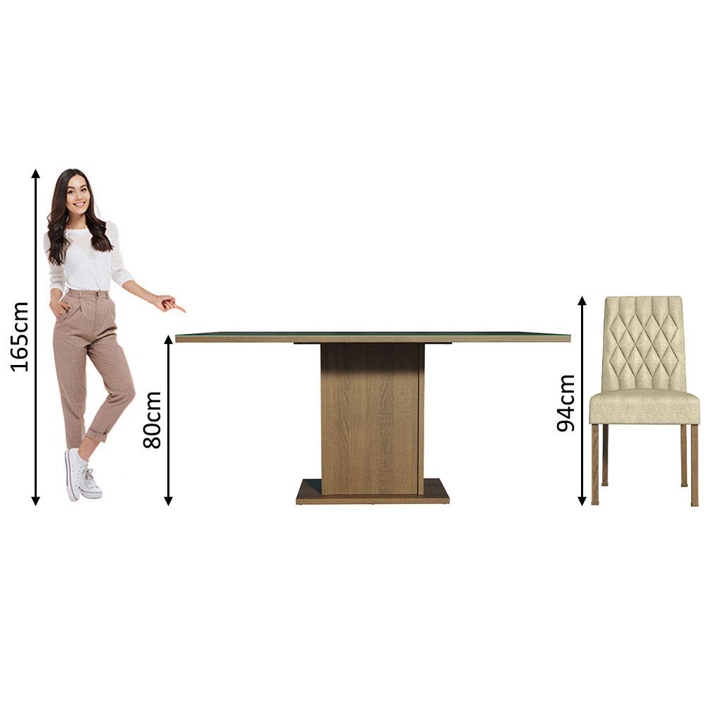 Conjunto Sala de Jantar Mesa Tampo de Vidro 6 Cadeiras Rustic/Preto/Imperial Geórgia Madesa