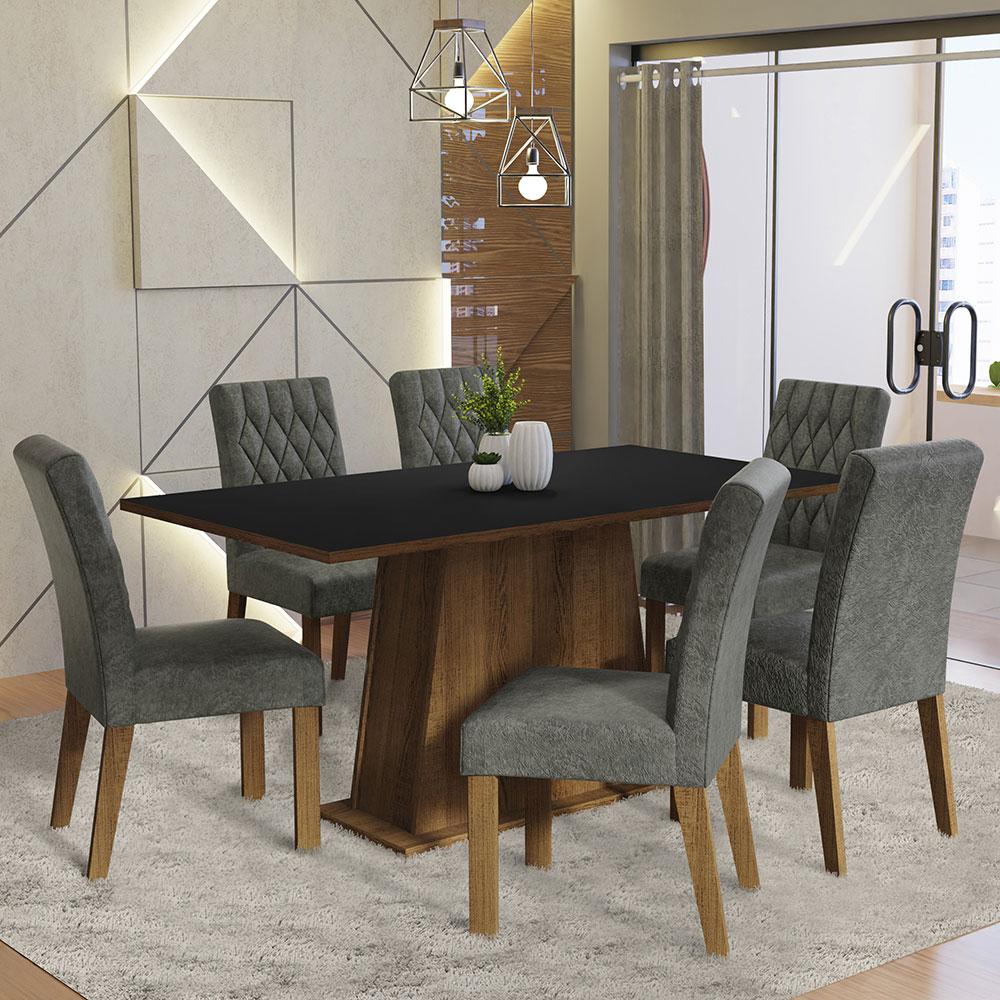 Conjunto Sala de Jantar Mesa Tampo de Madeira 6 Cadeiras Rustic/Preto/Silver Britney Madesa