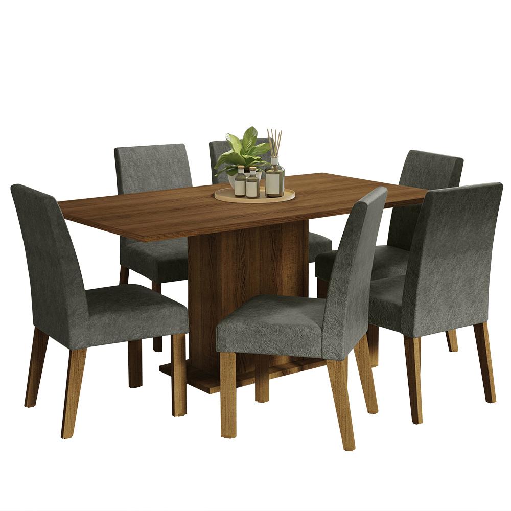Conjunto Sala de Jantar Mesa Tampo de Madeira 6 Cadeiras Rustic/Silver Renata Madesa