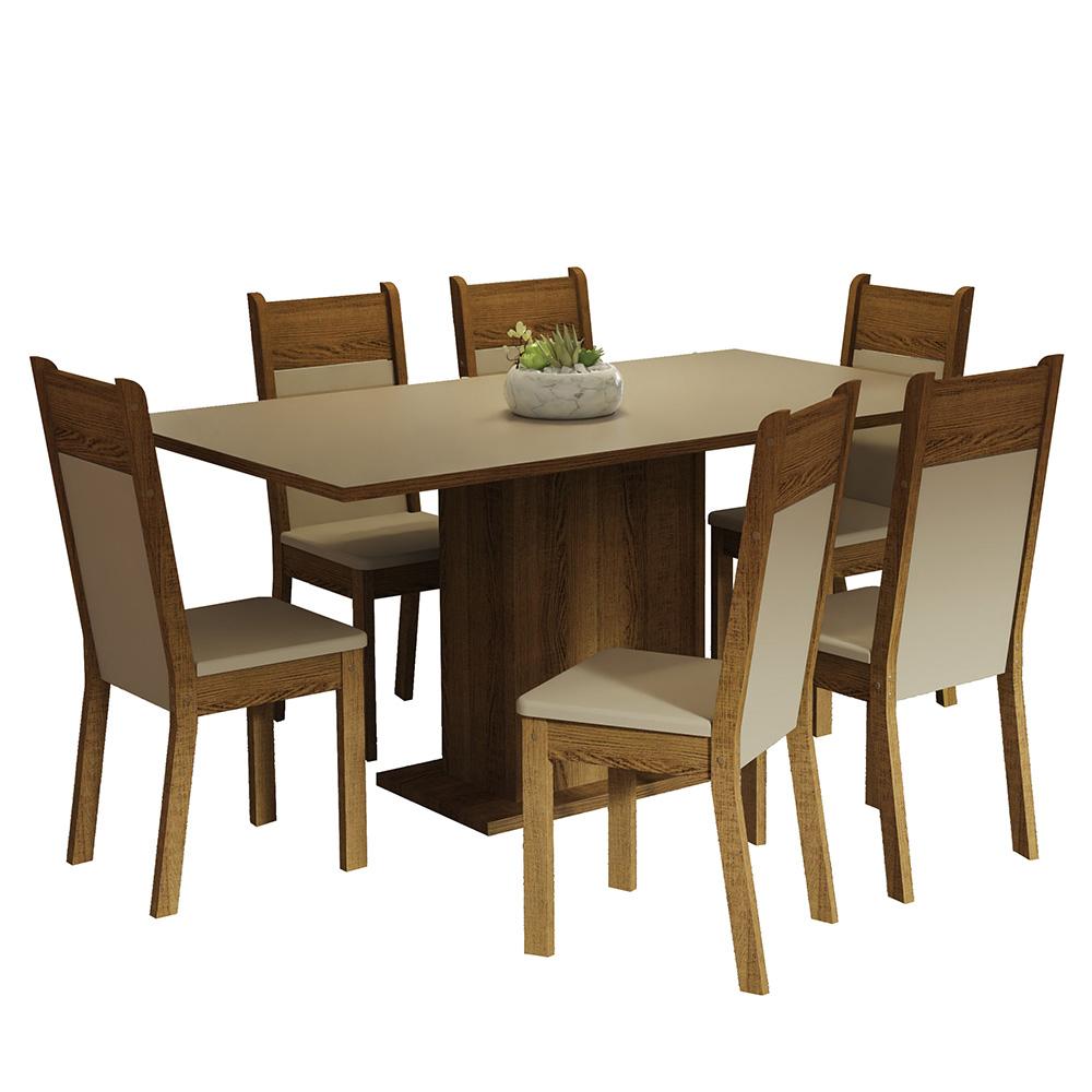 Conjunto Sala de Jantar Mesa Tampo de Madeira 6 Cadeiras Crema/Rustic/Bege Augusta Madesa