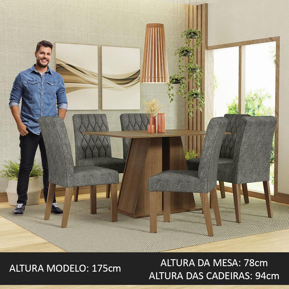 Conjunto Sala de Jantar Mesa Tampo de Madeira 6 Cadeiras Rustic/Silver Fabiana Madesa