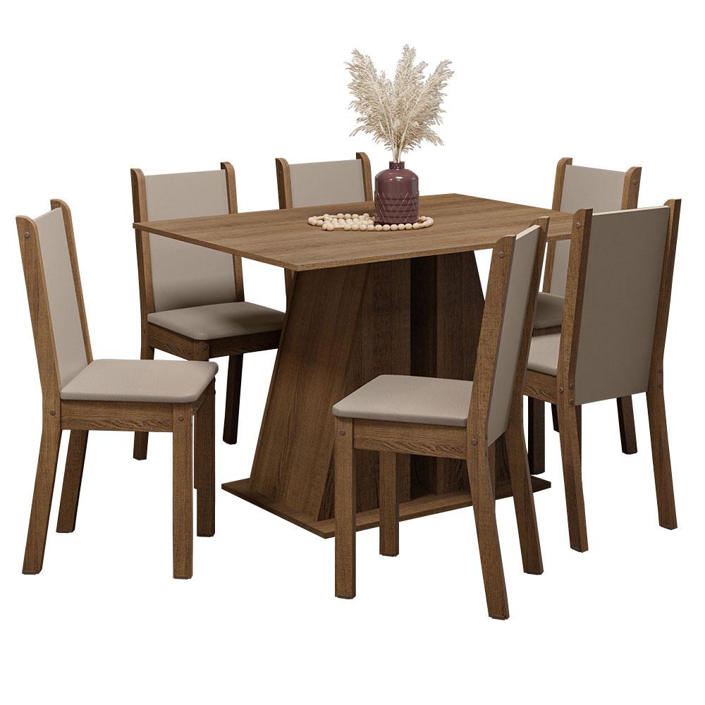 Conjunto Sala de Jantar Mesa Tampo de Madeira 6 Cadeiras Rustic/Bege Wendy Madesa