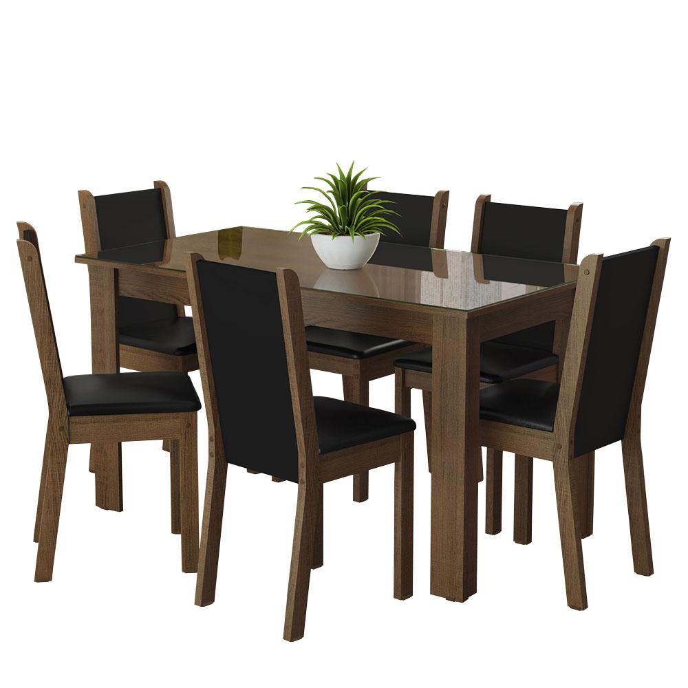 Conjunto Sala de Jantar Mesa Tampo de Vidro 6 Cadeiras Rustic/Preto Heloísa Madesa