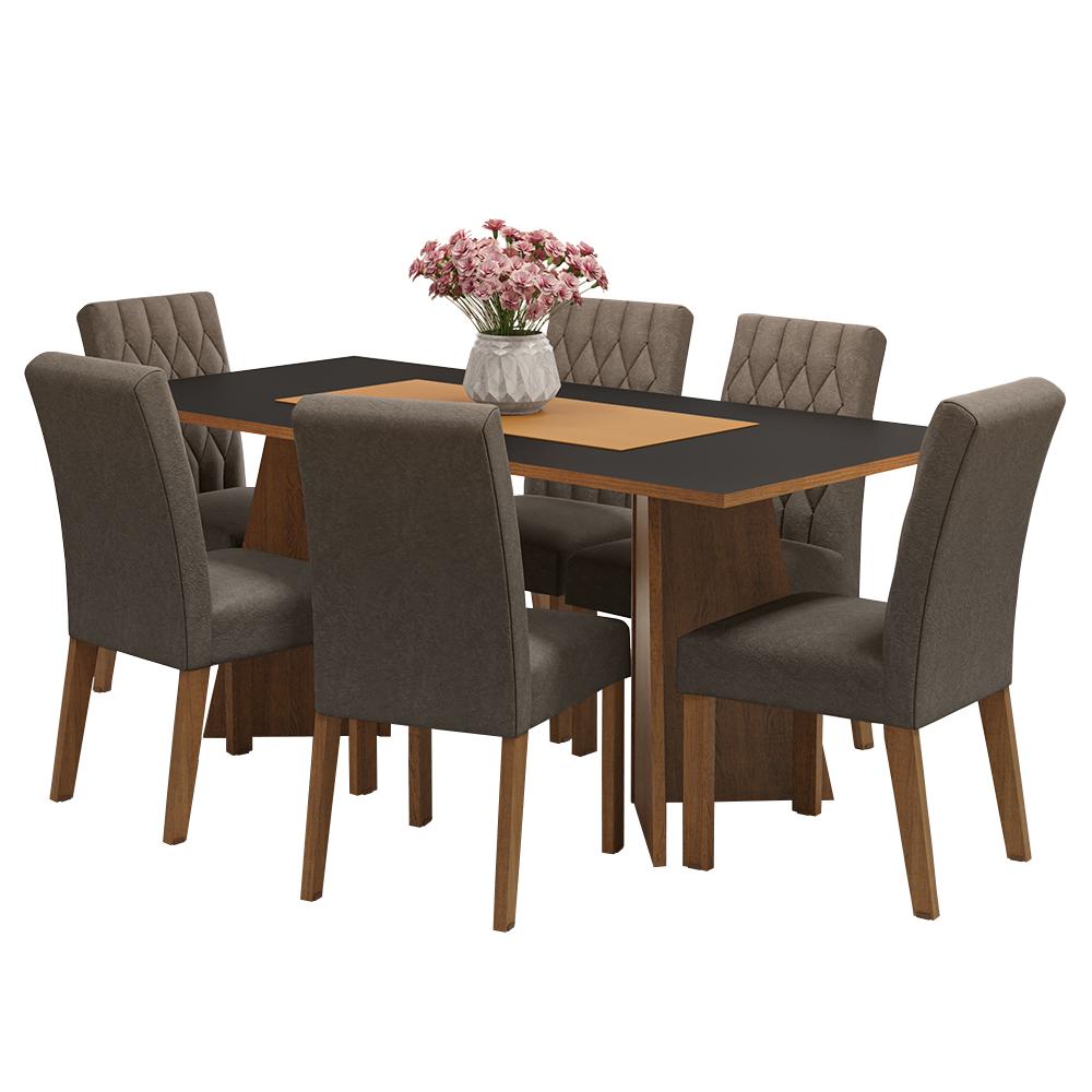 Conjunto Sala de Jantar Mesa Tampo de Madeira 6 Cadeiras Rustic/Preto/Silver Madison Madesa