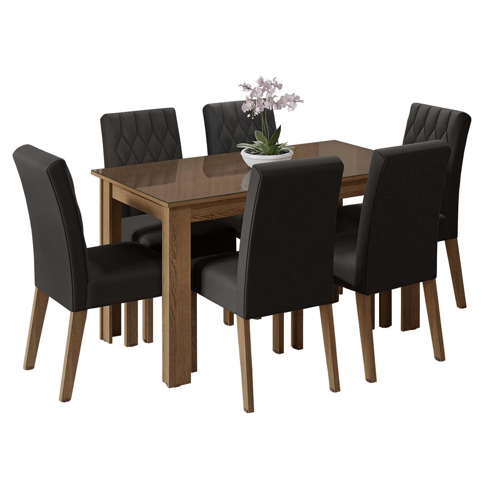 Conjunto Sala de Jantar Mesa Tampo de Vidro 6 Cadeiras Rustic/Oxford Odara Madesa
