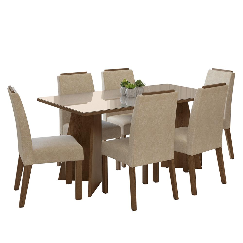 Conjunto Sala de Jantar Tampo de Vidro 6 Cadeiras Rustic/Crema/Imperial Madrid Madesa