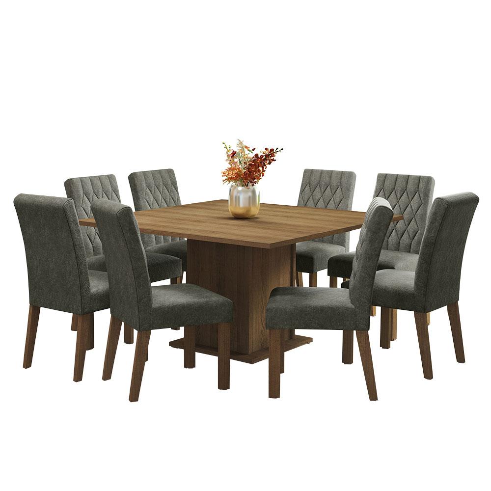 Conjunto Sala de Jantar Mesa Tampo de Madeira 8 Cadeiras Rustic/Silver Leila Madesa