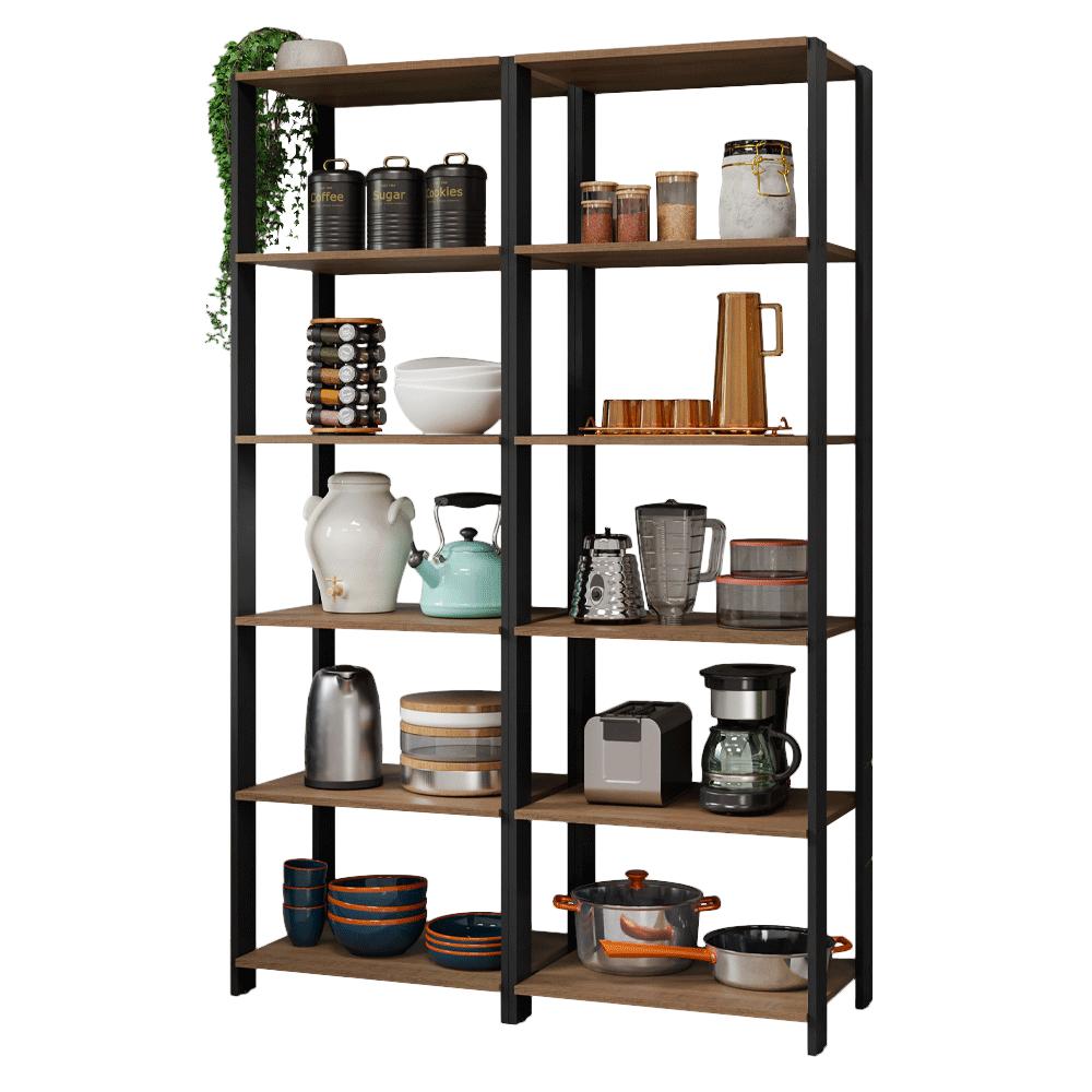 Armário Estante Multiuso Organizador 10 Prateleiras 118cm Rustic/Preto Madesa