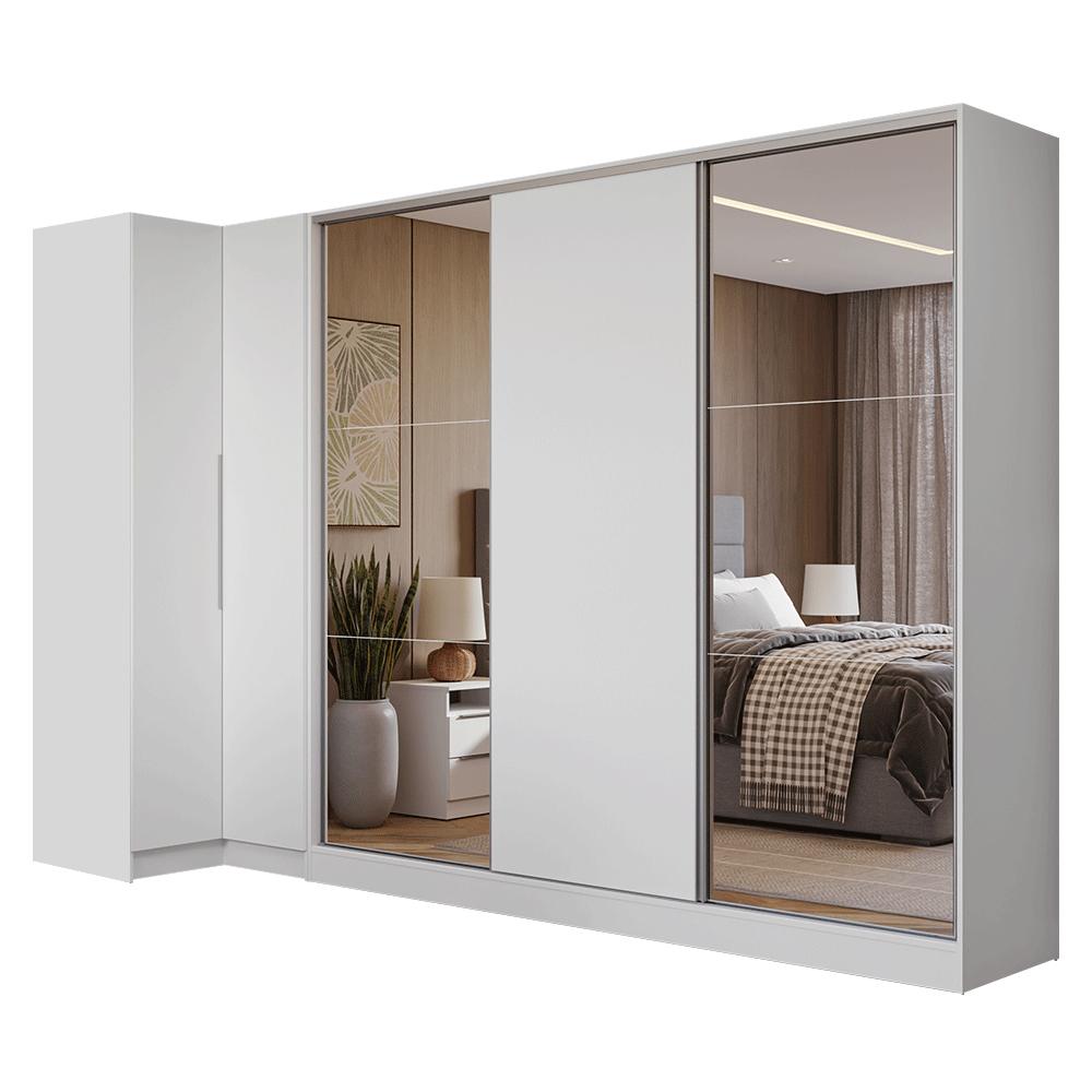Guarda-Roupa Modulado Neo + Guarda-Roupa Royale 3 Portas de Correr com Espelhos Branco Madesa