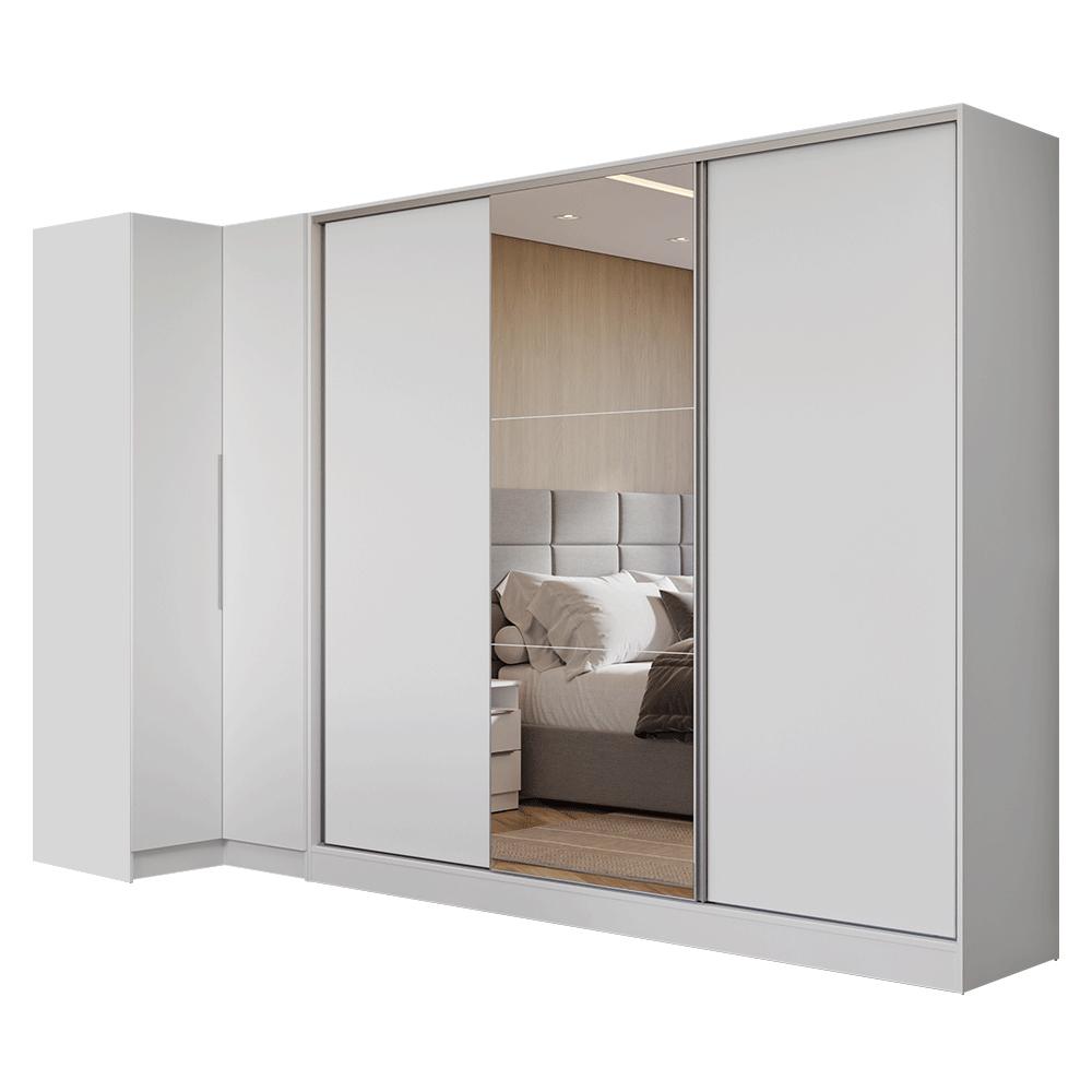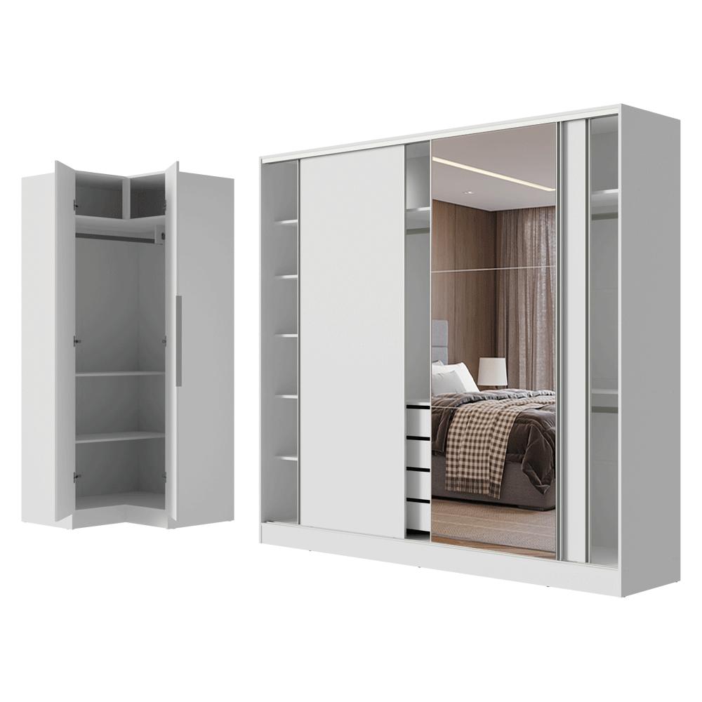 Guarda-Roupa Modulado Neo + Guarda-Roupa Royale 3 Portas de Correr com Espelho Branco Madesa