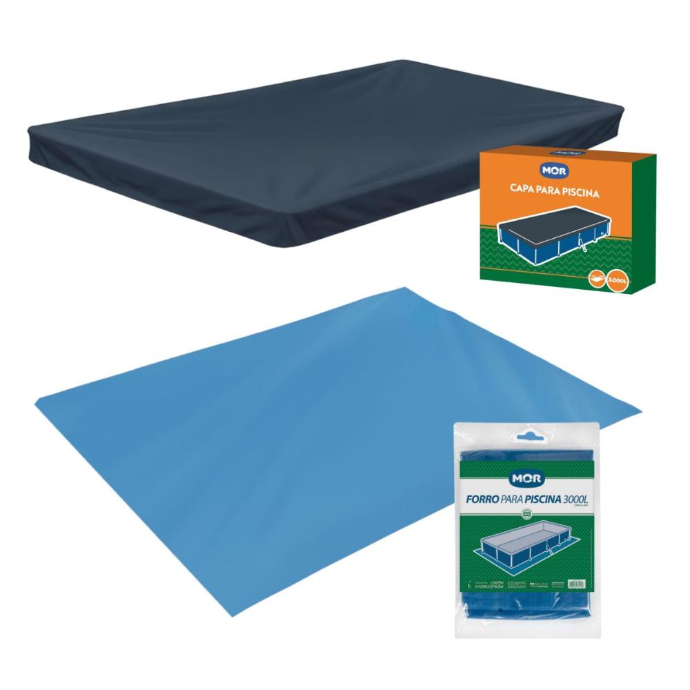 Capa e Forro para Piscina 3000 litros MorMantenha sua piscina sempre limpa com a Capa e Forro para Piscina 3000 litros! A capa é perfeita para proteger contra insetos parasitas, água da chuva, folhas e sujeiras em geral, conservando a água da piscina própria para banho por muito mais tempo, ajudando assim o meio ambiente. E o forro garante maior durabilidade, protegendo-a de pequenos objetos. Capa produzida em PVC, possui cordas em poliéster para serem fixadas na estrutura da Piscina de 3000 litros. Forro produzido em polietileno de alta qualidade, assegurando alto nível em resistência, sendo leve e de fácil locomoção. Lembrando que, além da Capa, é indispensável fazer o tratamento químico recomendado para a capacidade de água da sua piscina de acordo com seu Manual!Descrição do ProdutoMarca: MorCapa:Material: PVCCor: PretoMedidas(AxLxC): 0,01cm x 1,94m x 3,5mPeso: 1,480 kgForro:Material: PolietilenoCor: AzulMedidas(AxLxC): 0,01cm x 3,1m x 1,52mPeso: 304 gramasImagens meramente ilustrativas, todos os itens que ambientam o produto não estão inclusos.