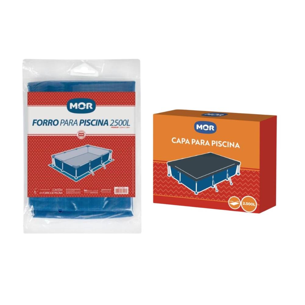 Capa e Forro para Piscina 2500 litros MorMantenha sua piscina sempre limpa com a Capa e Forro para Piscina 2500 litros! A capa é perfeita para proteger contra insetos parasitas, água da chuva, folhas e sujeiras em geral, conservando a água da piscina própria para banho por muito mais tempo, ajudando assim o meio ambiente. E o forro garante maior durabilidade, protegendo-a de pequenos objetos. Capa produzida em PVC, possui cordas em poliéster para serem fixadas na estrutura da Piscina de 2500 litros. Forro produzido em polietileno de alta qualidade, assegurando alto nível em resistência, sendo leve e de fácil locomoção. Lembrando que, além da Capa, é indispensável fazer o tratamento químico recomendado para a capacidade de água da sua piscina de acordo com seu Manual!Descrição do ProdutoMarca: MorCapa:Material: PVCCor: PretoMedidas(AxLxC): 0,01cm x 3,01m x 1,86mPeso: 1,230 kgForro:Material: PolietilenoCor: AzulMedidas(AxLxC): 0,01cm x 2,55m x 1,40mPeso: 232 gramasImagens meramente ilustrativas, todos os itens que ambientam o produto não estão inclusos.
