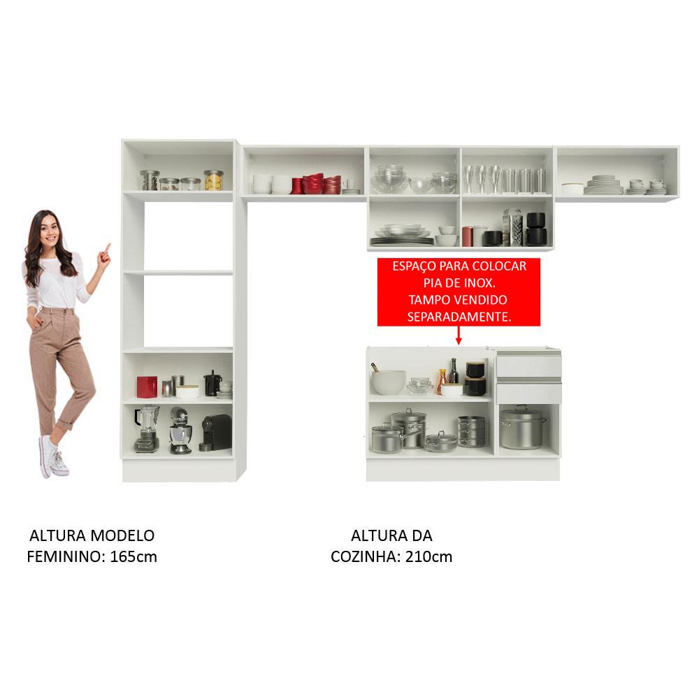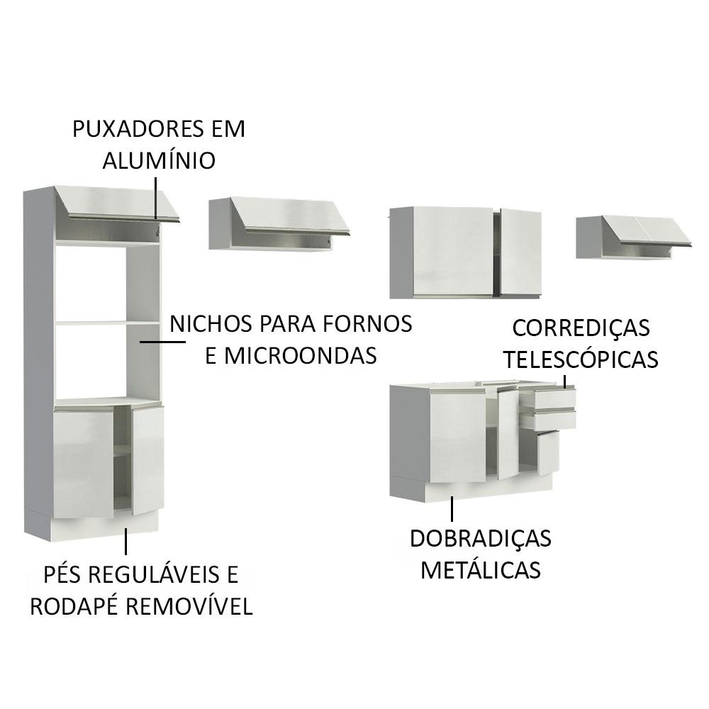 Armário de Cozinha Completa Madesa 100% MDF Acordes XA350001 (Sem Tampo e Pia) Portas Branco Brilho