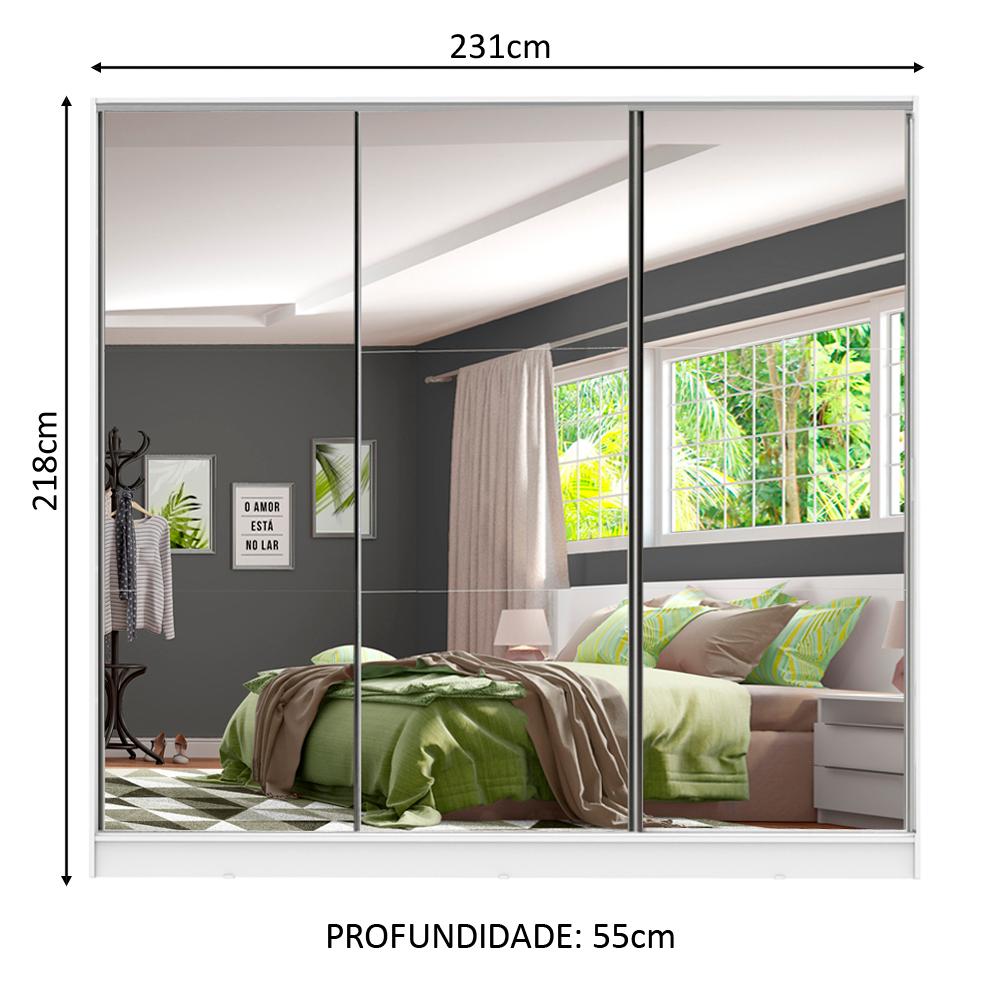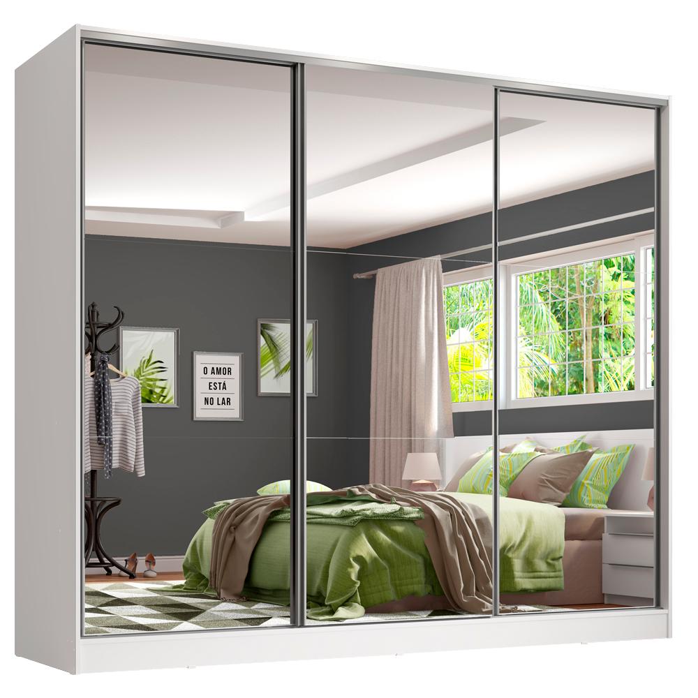 Guarda Roupa Juvenil 100% MDF Madesa Kevin 3 Portas de Correr de Espelho - Branco