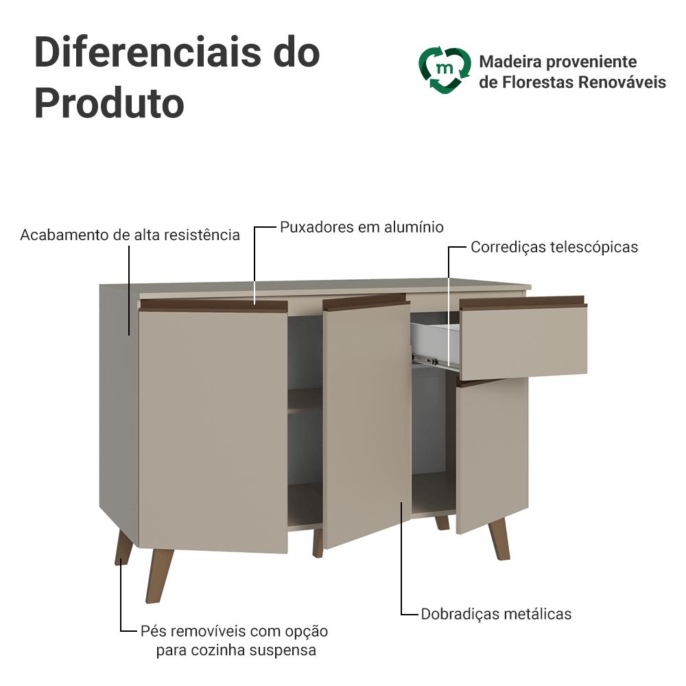 Balcão Cozinha 120 cm 3 Portas 1 Gaveta Com Pés Nice Madesa