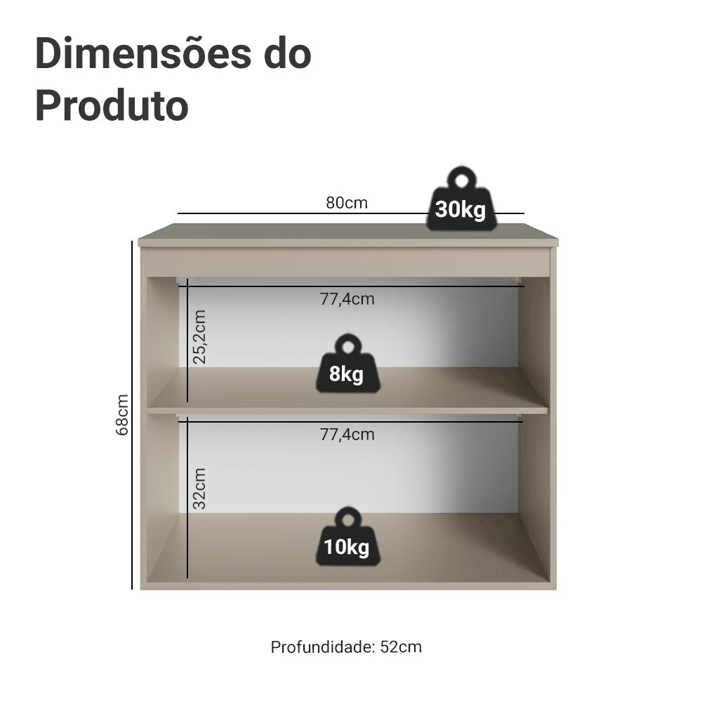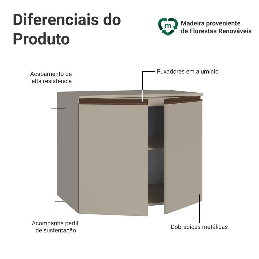 O Balcão de 80 cm da linha Nice da Madesa possui duas portas e divisão interna com uma prateleira e dois nichos. Com ótimo espaço disponível, é perfeito para organizar panelas, utensílios e mantimentos.Conta com puxadores em alumínio e dobradiças metálicas. Estes detalhes proporcionam maior durabilidade e aumentam a vida útil, conservando o móvel por muito mais tempo.O acabamento é realizado com pintura de alta resistência, garantindo maior durabilidade e proteção.Medidas totais:- 68 cm de altura- 80 cm de largura- 52 cm de profundidadeItens inclusos:- Um (1) Balcão com duas (2) portas e tampoCódigo do produto: XMG248003BNCXMG248007PNCObs.:- O produto não acompanha pés, deve ser instalado de forma suspensa- Imagens meramente ilustrativas, a decoração não acompanha o produto- A Madesa não disponibiliza serviço de montagem- O produto segue com manual e todas as ferragens necessárias para a instalação.A Madesa se dedica à sustentabilidade com várias iniciativas: temos uma usina própria para gerar energia que abastece uma de nossas fábricas. Selecionamos nossos fornecedores, priorizando aqueles que possuem um compromisso com a sustentabilidade e proteção do meio ambiente. Todo o plástico utilizado no setor produtivo é proveniente de reciclagem e as suas sobras são encaminhadas ao fornecedor que os recicla. Também investimos no desenvolvimento contínuo de nossos colaboradores e em ações educacionais que beneficiem a comunidade.