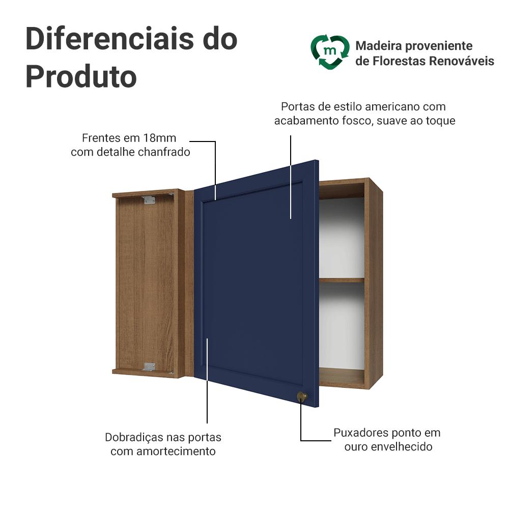 O Armário Aéreo de Canto da Linha Vik da Madesa foi desenvolvido para aproveitar ao máximo todos os espaços da sua cozinha de forma funcional e organizada. Com profundidade ideal para se encaixar perfeitamente nos módulos superiores da cozinha Vik, este armário possui uma porta e oferece armazenamento prático, facilitando a organização de utensílios e mantimentos.O acabamento de alta resistência da estrutura possui uma textura suave ao toque, trazendo leveza e sofisticação ao ambiente. O destaque vai para os puxadores ponto em ouro envelhecido, feitos com metal resistente, que adicionam personalidade e um charme único. Outro diferencial está no detalhe chanfrado das frentes, que forma molduras elegantes e dá profundidade ao design, refletindo o estilo americano com um toque moderno.Além de trazer elegância, a linha Vik é funcional em cada detalhe. As portas possuem dobradiças com amortecimento, garantindo um fechamento suave e silencioso.Cade detalhe foi pensado para tornar sua casa mais prática, bonita e aconchegante. Medidas:- 66 cm de altura- 94 cm de largura- 35 cm de profundidadeItens inclusos:- Um (1) Armário Aéreo com uma (1) porta Código do produto: XMG2575209VKXMG25752F8VKXMG25752L8VKXMG25752L9VKXMG257526EVKXMG25752F9VKXMG25752M1VKXMG25752M3VKObs.:- A sua profundidade conta já com a compensação por ser de canto- Imagens meramente ilustrativas, a decoração não acompanha o produto- A Madesa não disponibiliza serviço de montagem- O produto segue com manual de instalação e todas as ferragens necessárias para sua montagemA Madesa se dedica à sustentabilidade com várias iniciativas: temos uma usina própria que gera energia para uma das fábricas. Priorizamos fornecedores responsáveis com o meio ambiente. Todo o plástico utilizado na produção é reciclado, e as sobras também são reaproveitadas. Investimos no desenvolvimento de nossos colaboradores e em ações que beneficiem a comunidade.