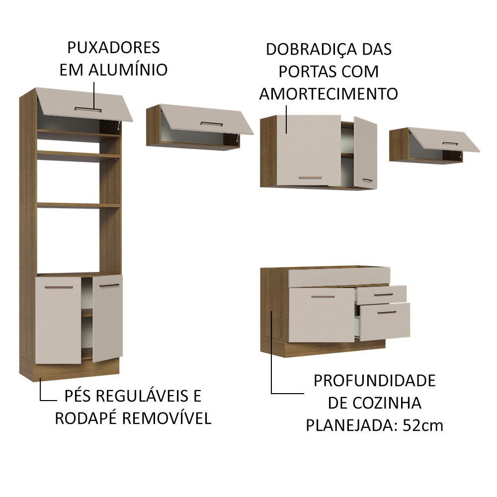 A Cozinha Completa Agata da Madesa possui design moderno e vai deixar sua casa mais aconchegante e organizada.Possui puxadores com alça em alumínio, gavetas com corrediças telescópicas, portas com amortecimento para fechamento suave e pés reguláveis em PVC, com rodapé removível em MDP.A cozinha é planejada, com todas as peças podendo ser organizadas conforme o espaço disponível no seu ambiente.O balcão da cozinha tem espaço para pia de inox ou pedra nas medidas de 120 x 52 cm e não acompanha tampo.O acabamento é feito em Pintura Poliéster com 7 camadas de proteção contra os efeitos da água e do calor.Esta cozinha pode ser complementada pelos módulos avulsos da linha Agata da Madesa.Medidas totais:- 225 cm de altura- 350 cm de largura- 52 cm de profundidade no balcão e na torre e 31 cm nos aéreosItens inclusos:- Uma (1) Torre Quente de 70 cm com três (3) portas, dois (2) nichos para fornos e um (1) nicho menor- Dois (2) Aéreos de 80 cm com uma (1) porta basculante- Um (1) Aéreo de 120 cm com duas (2) portas- Um (1) Balcão de Pia de 120 cm com duas (2) gavetas e uma (1) porta (Não acompanha tampo.)Código do produto: XMGRAG3500015L e XMGRAG3500017G Obs.:- As imagens são meramente ilustrativas, os eletros e a decoração não acompanham o produto- A Madesa não disponibiliza serviço de montagem- O produto segue com manual e todas as ferragens necessárias para a instalação- Por segurança, é obrigatório fixar a torre quente na parede1 – O produto vem montado? Se não, vocês realizam a montagem?R.: A Madesa não disponibiliza serviço de montagem. Todos os produtos seguem com manual de instalação e as ferragens necessárias. Alguns produtos possuem vídeo explicando o passo a passo da montagem.2 – Vocês possuem loja física? Posso retirar meu produto em mãos?R.: Não possuímos loja física, apenas loja virtual. Confira as opções de envio ao colocar o seu CEP.3 – Qual é o valor do envio? Posso pagar separadamente?R.: O valor do envio é calculado com base no peso e volume do produto, e no CEP de destino. Você pode calcular o valor e prazo de entrega no simulador.4 – A Madesa entrega em todo Brasil? Como é feita a entrega?R.: Sim, entregamos no Brasil inteiro através de transportadoras parceiras.5 – Os produtos possuem garantia?R.: Sim. A Madesa oferece 3 meses de garantia para defeitos de fabricação.A Madesa se dedica à sustentabilidade com várias iniciativas: temos uma usina própria para gerar energia que abastece uma de nossas fábricas. Selecionamos nossos fornecedores, priorizando aqueles que possuem um compromisso com a sustentabilidade e proteção do meio ambiente. Todo o plástico utilizado no setor produtivo é proveniente de reciclagem e as suas sobras são encaminhadas ao fornecedor que os recicla. Também investimos no desenvolvimento contínuo de nossos colaboradores e em ações educacionais que beneficiem a comunidade.