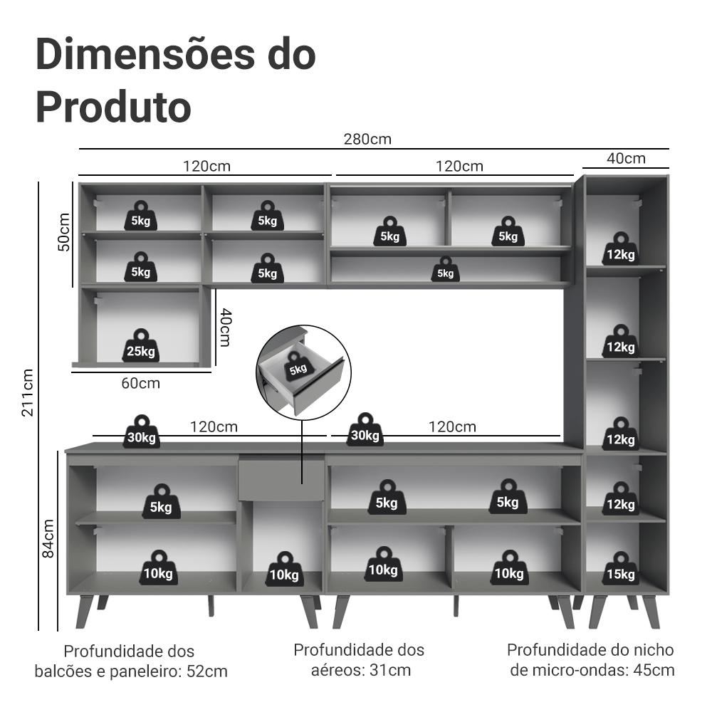 Armário de Cozinha Completa 280 cm Nice Madesa 03