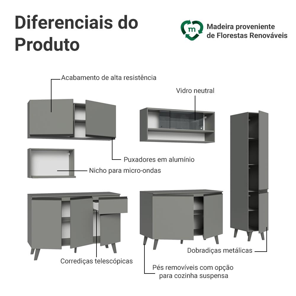 A Cozinha Completa é a solução perfeita para quem busca praticidade e organização. O armário com vidro neutral traz um toque de elegância ao ambiente enquanto o módulo aéreo projetado para acomodar fornos ou micro-ondas traz mais funcionalidade.O acabamento se destaca por sua tonalidade sofisticada e atemporal, transmite modernidade, adaptando-se a diferentes estilos de decoração.Produzido com materiais de qualidade, o balcão conta com dobradiças metálicas nas portas e puxadores em perfil de alumínio, discretos e resistentes. O tampo é removível, o que permite a instalação de cuba ou pedra. O acabamento é de alta resistência, garantindo durabilidade.Medidas totais:- 211 cm de altura- 280 cm de largura- 52 cm de profundidade nos balcões e paneleiro, 31 cm nos aéreos e 45 cm no nicho para micro-ondasO que você recebe:- Um Armário Aéreo de 120 cm com duas portas- Um Nicho aéreo de 60 cm com espaço para forno- Um Armário Aéreo de 120 cm com duas portas em vidro neutral- Um Balcão de 120 cm com três portas e uma gaveta - Um Armário Aéreo de 120 cm com duas portas- Um Paneleiro de 40 cm com duas portasCódigo do produto:XMGRNC2800033BXMGRNC2800037PÉ importante saber:- Material: MDP- Imagens meramente ilustrativas, a decoração não acompanha o produto.- A Madesa não oferece serviço de montagem.- O produto segue com manual e todas as ferragens necessárias.- Por segurança, o paneleiro deve ser fixado na parece.A Madesa se dedica à sustentabilidade com várias iniciativas: temos uma usina própria que gera energia para uma das fábricas. Priorizamos fornecedores responsáveis com o meio ambiente. Todo o plástico utilizado na produção é reciclado, e as sobras também são reaproveitadas. Investimos no desenvolvimento de nossos colaboradores e em ações que beneficiem a comunidade.