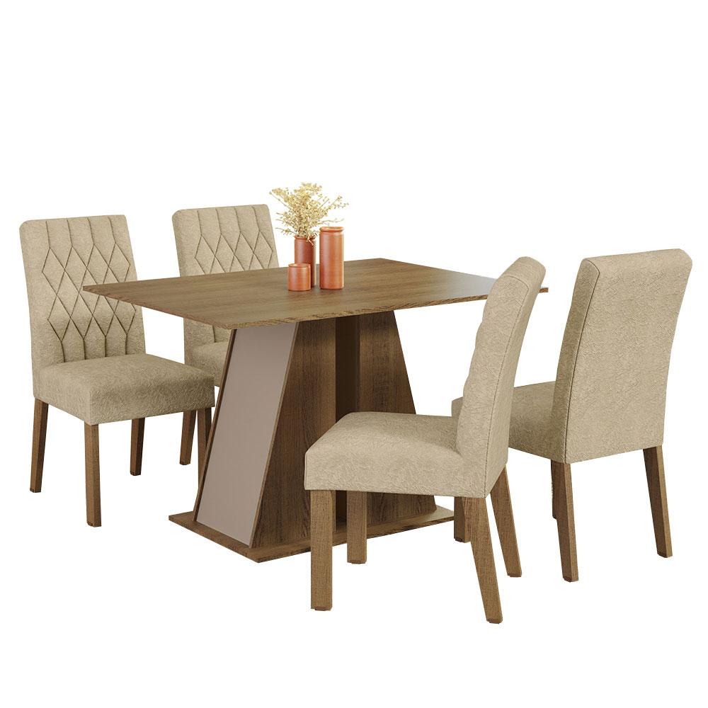 Conjunto Sala de Jantar Mesa Tampo de Madeira 4 Cadeiras Gisele Madesa