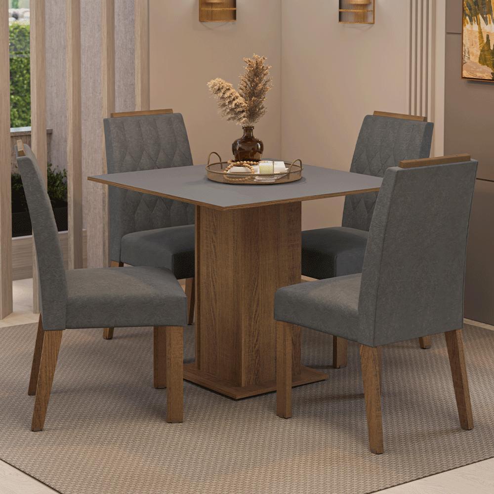 Conjunto Sala de Jantar Tampo de Madeira 4 Cadeiras Cannes Madesa