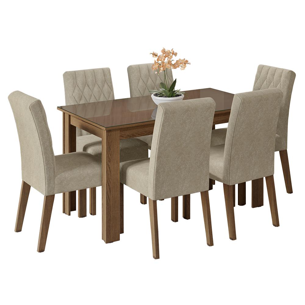 Conjunto Sala de Jantar Mesa Tampo de Vidro 6 Cadeiras Odara Madesa