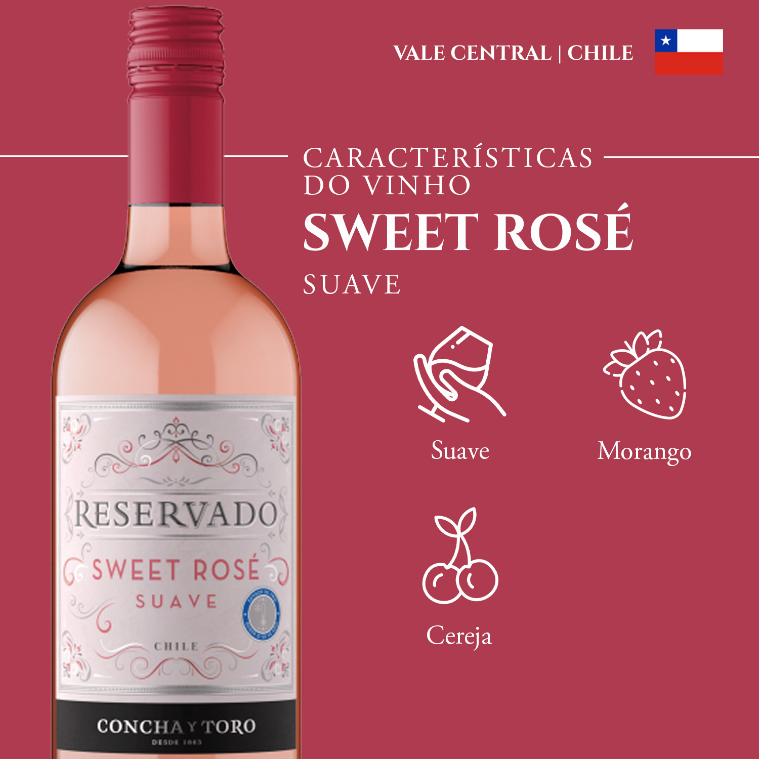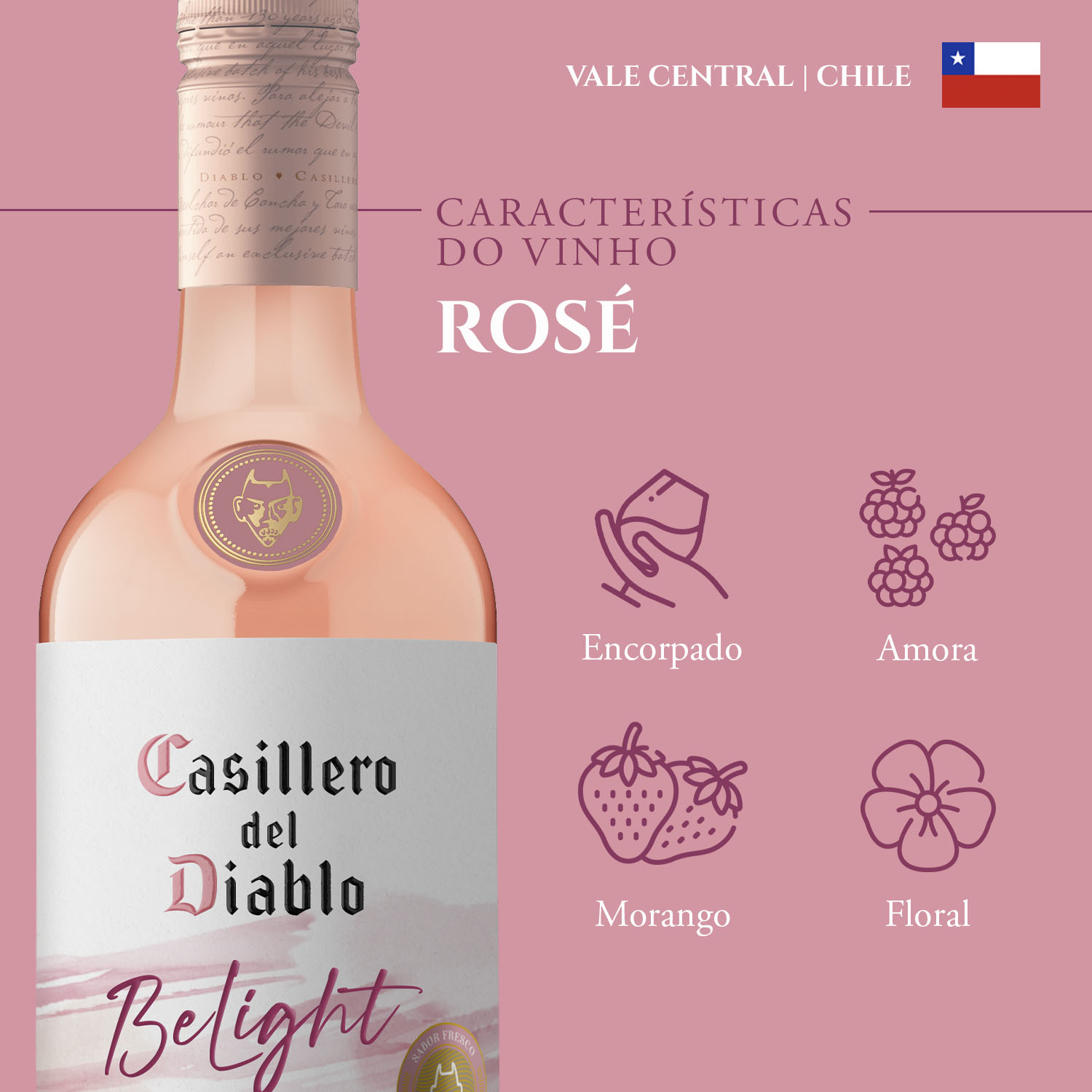 KIT LINHA ROSÉ RESERVADO E CASILLERO DEL DIABLO 1 Concha y Toro Vinho Rosé Chileno Reservado Spritzer Cabernet Sauvignon 750 ml 1 Concha y Toro Vinho Rosé Chileno Reservado Sweet Rosé 750 ml 1 Casillero del Diablo Vinho Rosé Chileno 750 ml 1 Casillero del Diablo Reserva Belight Vinho Rosé Chileno 750 ml Reservado Spritzer Rosé: leve, refrescante e tropical Com uma cor rosada clara e elegante, o Reservado Spritzer Cabernet Sauvignon revela toda a leveza, sofisticação e frescor delicado típicos de um vinho rosé suave. Sua tonalidade suave antecipa uma experiência refrescante e agradável em cada taça. No aroma, destacam-se notas tropicais de abacaxi maduro e banana, que despertam os sentidos com um charme frutado e toques exóticos. O paladar combina frescor e doçura, com acidez equilibrada e um final suavemente adocicado que prolonga o sabor na boca. A linha Reservado Spritzer traduz a qualidade e o espírito casual da Concha y Toro, trazendo vinhos que combinam frescor e suavidade para diversas ocasiões. Harmonização perfeita: acompanha entradas frias, queijos leves e sobremesas delicadas, sendo também ideal para degustar com calma e sem pressa. Reservado Sweet Rosé: refrescante, frutado e delicadamente doce Com um tom claro e brilhante, este vinho rosé apresenta uma cor rosa delicada e luminosa, ideal para ocasiões leves e descontraídas. Sua aparência suave antecipa uma experiência fresca e agradável, perfeita para momentos de descontração. No aroma, destacam-se intensas notas de frutas vermelhas, como morango e cereja, que despertam o olfato com charme e vivacidade. No paladar, o vinho revela equilíbrio entre o dulçor e a acidez leve, proporcionando uma sensação refrescante e doce ao mesmo tempo. A linha Reservado Spritzer traduz a qualidade e o espírito casual da Concha y Toro, trazendo vinhos que combinam frescor e suavidade para diversas ocasiões. Harmonização perfeita: acompanha aperitivos frios, frutas frescas e sobremesas leves como mousses e tortas, valorizando o frescor e a delicadeza em cada combinação. Casillero del Diablo Rosé: suave, fresco e frutado Com coloração delicada em tom salmão claro, este rosé chileno destaca sua leveza e charme desde o primeiro olhar. No aroma, framboesas, amoras e frutas vermelhas silvestres trazem frescor e intensidade, criando uma experiência olfativa vibrante. No paladar, apresenta corpo médio, acidez agradável e sabores marcantes de ameixa e amora, equilibrando suavidade e sabor em cada gole. Um vinho que conquista pela harmonia e frescor. Casillero del Diablo é um verdadeiro ícone chileno. Reconhecido mundialmente, combina tradição, autenticidade e ousadia para criar vinhos que encantam diferentes gerações. Harmonização perfeita: combina com saladas, peixes, frutos do mar e queijos de acidez suave, como mussarela, trazendo leveza às refeições. Reserva Belight Rosé: leve, refrescante e encantador Com apenas 52 calorias por taça, o Reserva Belight Rosé traz uma leveza que encanta, preservando todo o frescor e o perfil clássico do rosé da Casillero del Diablo. Sua cor clara e vibrante convida a uma experiência refrescante e delicada, perfeita para o dia a dia. No aroma, notas delicadas de amora, morango e suaves toques florais criam uma combinação frutada e leve, que se reflete no paladar com frescor e uma acidez equilibrada, garantindo suavidade e sabor desde o primeiro gole. A linha Belight é feita para quem busca mais leveza no dia a dia, sem abrir mão da qualidade e da essência marcante dos vinhos Casillero del Diablo. Harmonização perfeita: acompanha queijos leves, nozes e petiscos variados, combinando perfeitamente com encontros descontraídos e momentos de sabor.