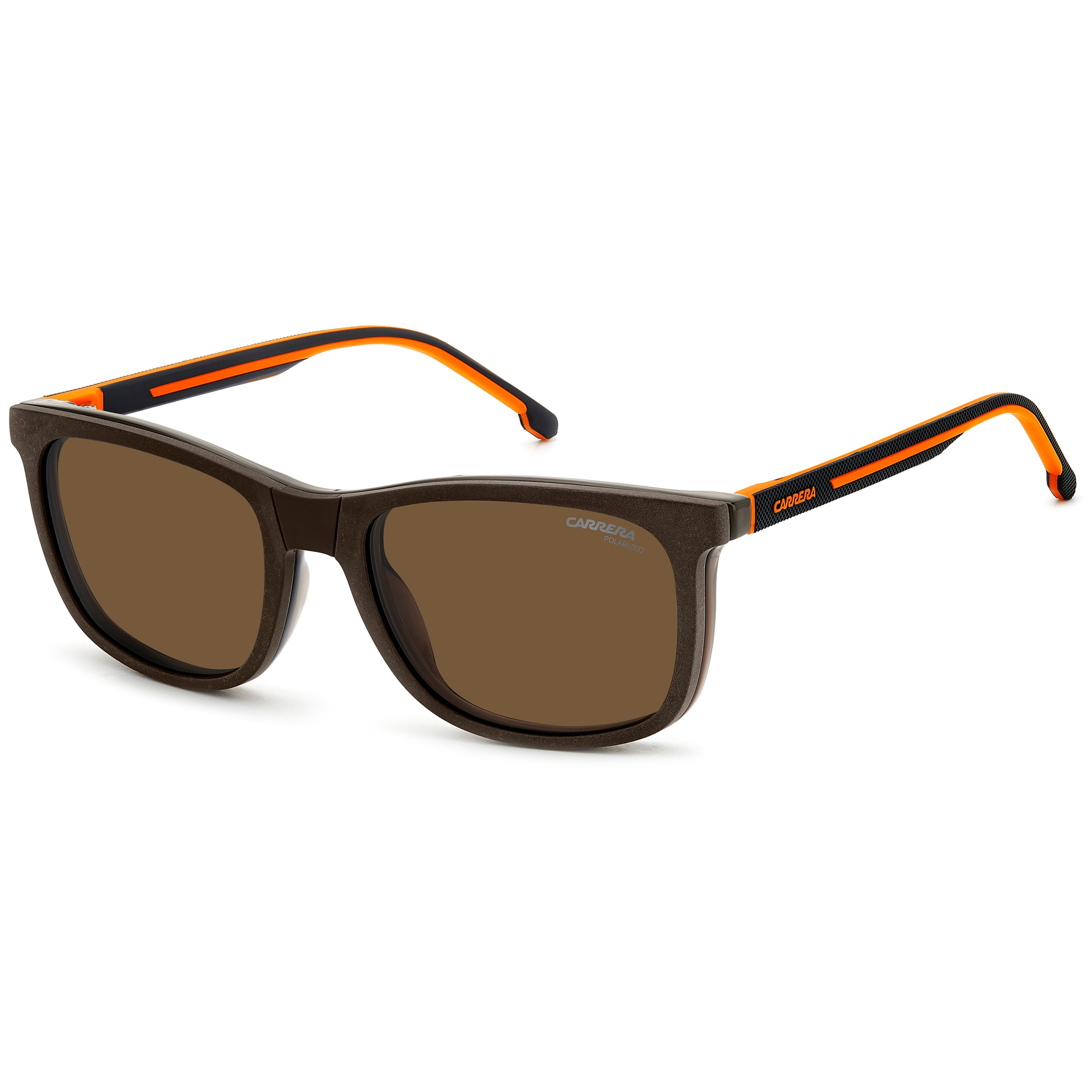 Carrera, fundada em 1956, é referência em design e qualidade, com óculos que inspiram pessoas a viverem de forma única e desafiadora.Marca: CarreraTipo: Armação de Óculos Clip OnModelo: Ca 8918/C 12JLinha: SportGênero: Masculino AdultoFormato: RetangularMateriais da Armação: Poliamida EcológicaCores da Armação: Marrom - LaranjaTipo de Lente: Clip On Marrom Polarizado Dobrável - UVA UVB 100%Tamanho da Lente: 54 mmAltura da Lente: 43,5 mmTamanho da Haste: 145 mmTamanho da Ponte: 18 mmBase da Lente: Base 4 EsféricaFitting: InternationalEspecificações do Produto Estes óculos Carrera unem desempenho e estilo. A frente retangular está disponível em cores sólidas ou bicolores. Cada par acompanha lentes solares polarizadas de encaixe rápido (clip-on), transformando o visual instantaneamente. As hastes são texturizadas, com inserções de borracha em contraste e logo em relevo, reforçando o caráter dinâmico do modelo..Garantia do Fabricante