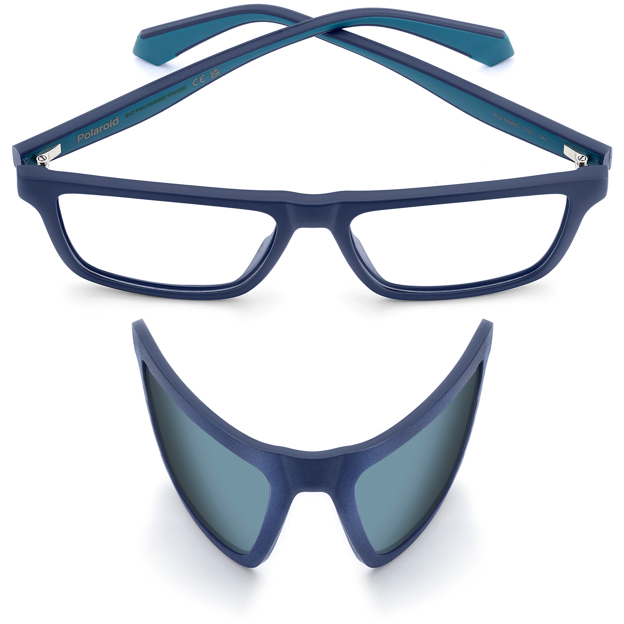 Armação de Óculos Clip On Polaroid Pld D590/C FLL - Azul Fosco 55