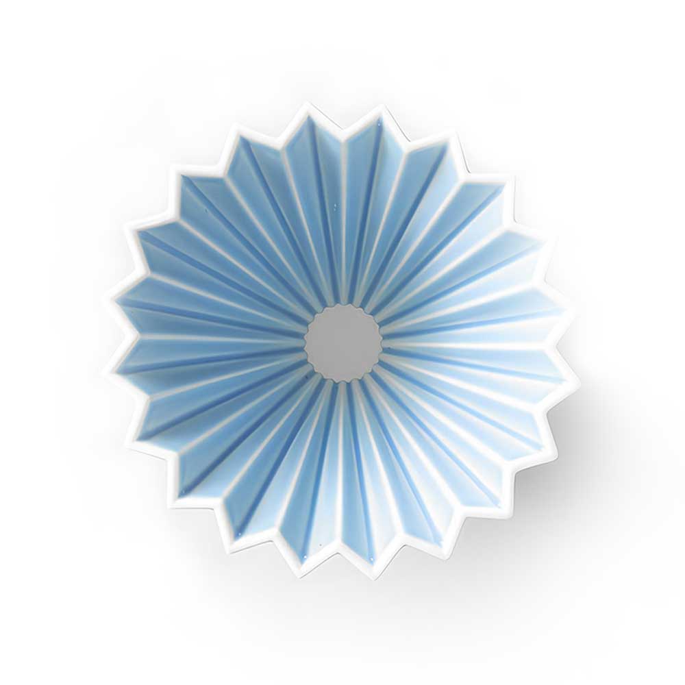 A principal característica do ORIGAMI Dripper são os relevos verticais esculpidos em intervalos regulares. Esses vinte relevos, com profundidade precisamente calculada, criam um caminho para o ar entre o dripper e o filtro de papel, estabilizando o fluxo da água quente e contribuindo para uma extração ideal, valorizada pelos baristas.