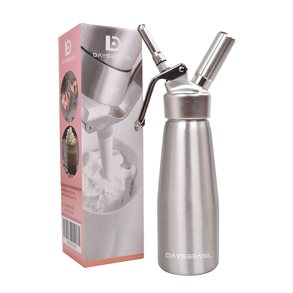 A Garrafa Sifão de Alumínio 500 ml DaysBrasil, na cor prata e com cabeçote de alumínio, é ideal para o preparo de chantilly, cremes aerados, espumas, mousses e sobremesas. Nossos sifões são fáceis de usar e simples de limpar.
