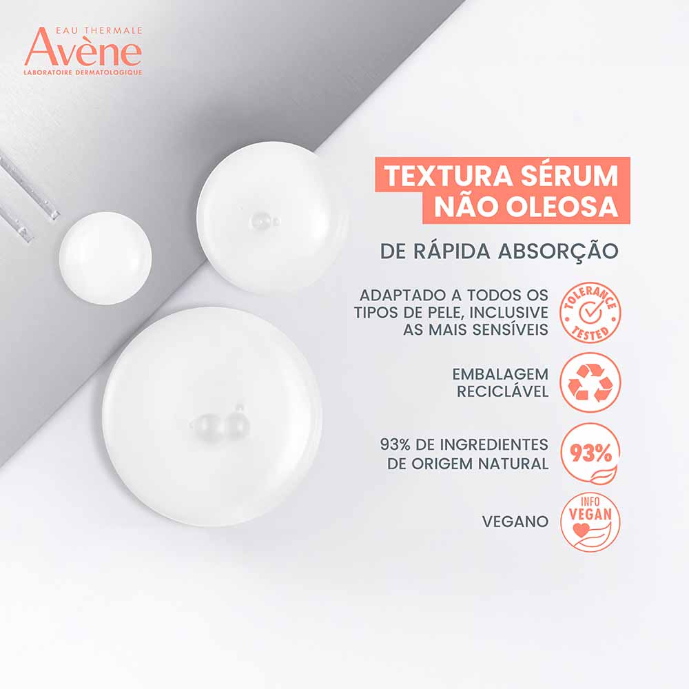 O produto tem alta segurança e tolerabilidade, é adaptado para todos os tipos de pele e foi testado em peles sensíveis. Avène firma o seu compromisso com a sustentabilidade trazendo um produto vegano, com embalagens recicláveis e com 93% de ingredientes de origem natural.
