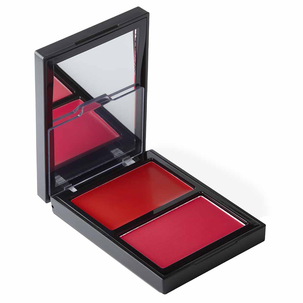 - Combinação de blush em pó e cremoso no mesmo estojo;