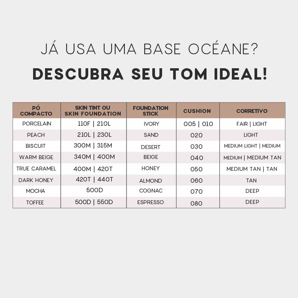Claro! O nosso Compact Powder Edition pode ser aplicado diretamente na sua pele. Sozinho, ele entrega um efeito natural e leve, absorve a oleosidade e ainda confere acabamento fosco ao rosto. Entretanto, ele pode ser usado com qualquer base Océane, aquela que você mais gosta.