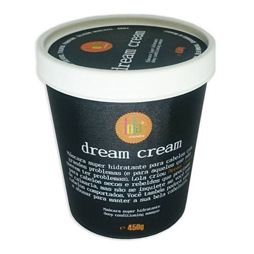 Seu cabelo precisa de reconstrução IMEDIATA?? Então esse é o SEU creme! O Dream Cream da Lola é uma máscara super potente para cabelos secos e rebeldes. Ele recupera cabelos expostos a tinturas, agressões externas e agentes químicos variados. Possui fórmula enriquecida com Óleo de Argan, Manteiga de Abacate e um mix de aminoácidos reconstrutores que garantem a reposição de proteínas (massa) dos cabelos danificados. Máscara super hidratante para cabelos com grandes problemas (e para aqueles que não querem ter problemas). Tinturas. Chapinhas. Sol. Mar. Cloro. É guerra! Escolha suas armas: frutas, óleos e manteigas vegetais. A Lola criou Dream Cream para cabelos secos e rebeldes que precisam de calmaria, mas não se inquietam. Se você tem cabelos lisos e comportados também poderá usar e abusar para manter sua bela cabeleira. Dream Cream é uma máscara única, com textura exclusiva que proporciona total aderência aos fios aproveitando os ativos e seus benefícios por completo. Indicado para: Cabelos muito danificados, pois, restaura os fios instantaneamente proporcionando hidratação profunda e prolongada. Por que você vai amar? - recupera os fios - trata o cabelo profundamente Modo de uso: Após o shampoo de sua preferência, aplicar a máscara Dream Cream nos cabelos, mecha a mecha, enluvando bem para ativar a absorção do produto pelos fios. Tempo de pausa de 15 a 30 minutos (com ou sem utilização de fonte de calor). Enxaguar e finalizar como de costume. Tratamento de utilização semanal (para cabelos muito danificados) e quinzenal (para danos moderados e leves). Ativos: - Óleo de argan: rico em vitaminas a, d e e com efeito antioxidante e regenerativo. - Manteiga de abacate: proporciona maciez, hidratação, brilho e combate à queda. Resultado: Seus cabelos muito mais saudáveis e tratados Lola Cosmetcs, uma empresa vegana: Você sabia que a Lola é uma empresa vegana que se preocupa com os animaizinhos desse mundo? Isso inclui sermos contra os testes em catiorríneos, gatíneos e outros bichíneos. #alolaamaosbichínenos A marca: A Lola Cosmetics surgiu a partir de uma escolha: ser feliz! Levar a vida com bom humor, ainda que nada pareça dar certo. Nem mesmo o seu cabelo! Fazem o papel de levar até você sensações e cuidados especiais, cores vibrantes, textos motivadores e bem humorados, provocando um sentimento único e motivador! A Lola é uma empresa Vegana que se preocupa com os animaizinhos desse mundo, isso inclui serem contra testes em cachorros, gatos e outros bichinhos!