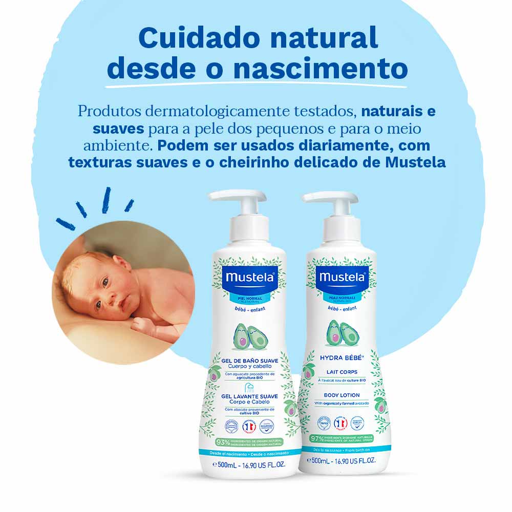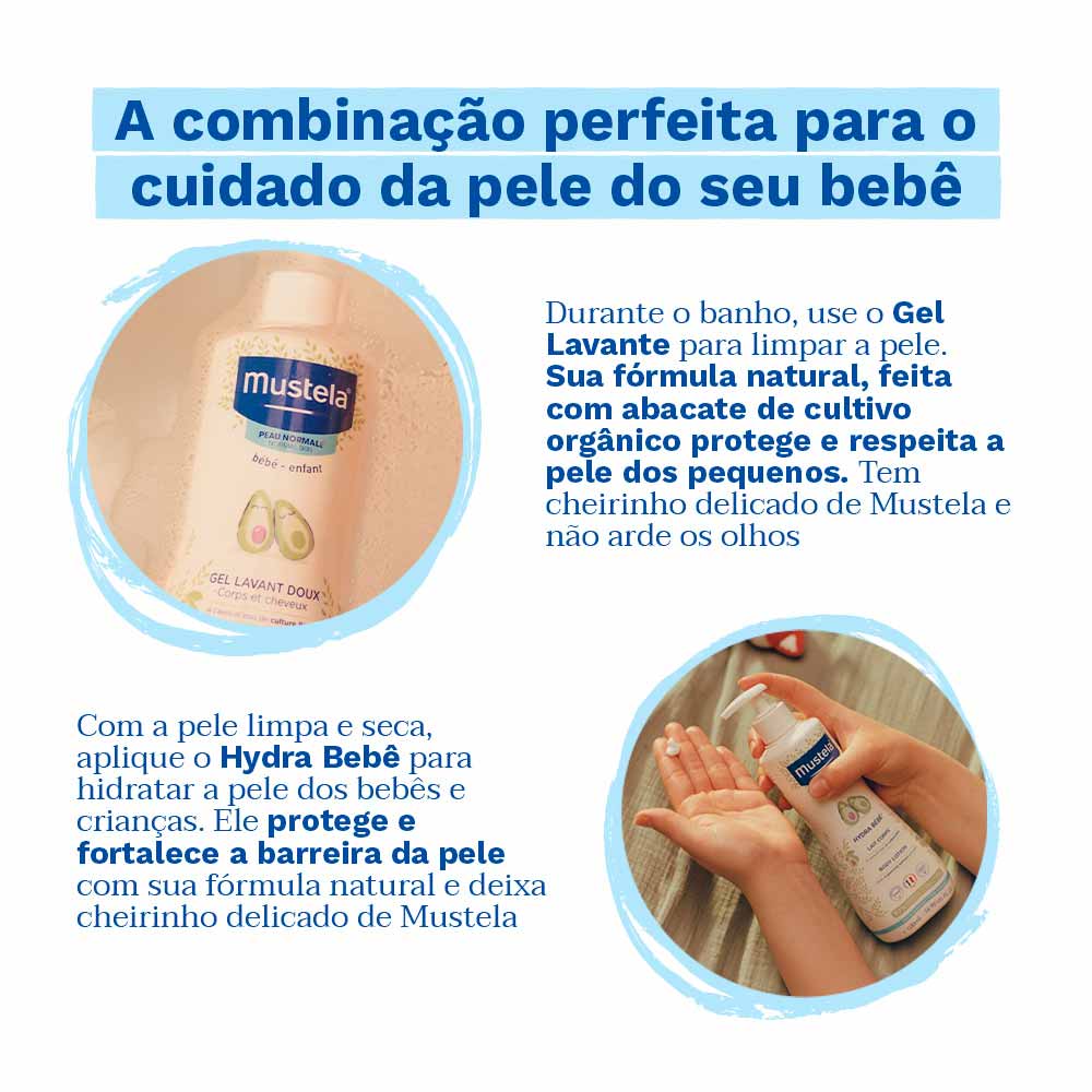 Este kit combina o Gel Lavante Mustela Corpo e Cabelo, ideal para o banho dos pequenos, e o Hidratante Mustela Hydra Bebê, que mantém a pele do bebê macia e protegida.