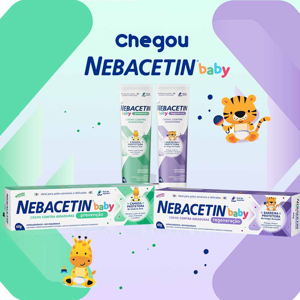 2. Se a pele do seu bebê parecer saudável use Nebacetin Baby Prevenção se estiver um pouco irritada use Nebacetin Baby Regeneração.