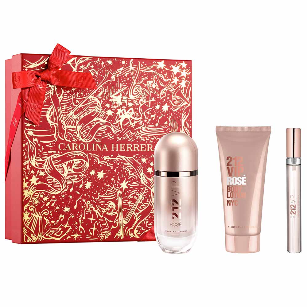 Coffret Carolina Herrera Kit - Perfume 212 Vip Rose + Creme Corporal + Travel Size