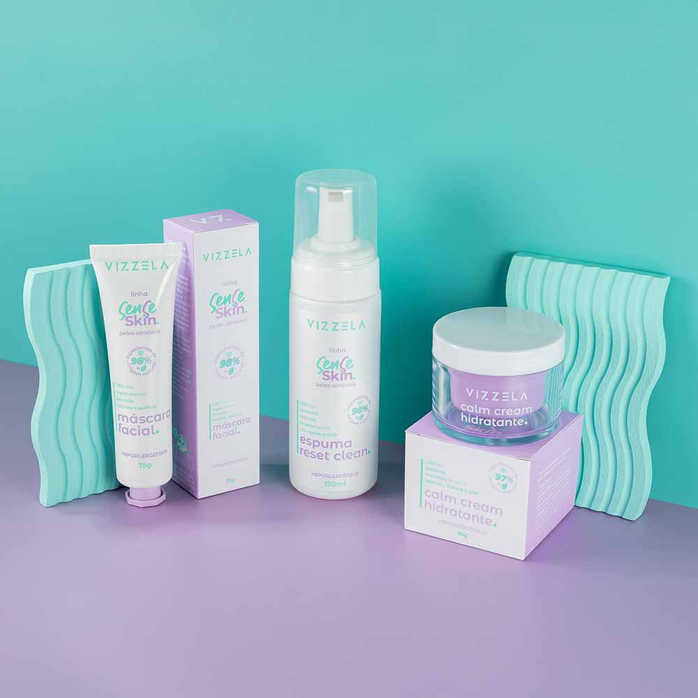 Kit Vizzela Sense Skin - Máscara + Hidratante + Espuma De Limpeza