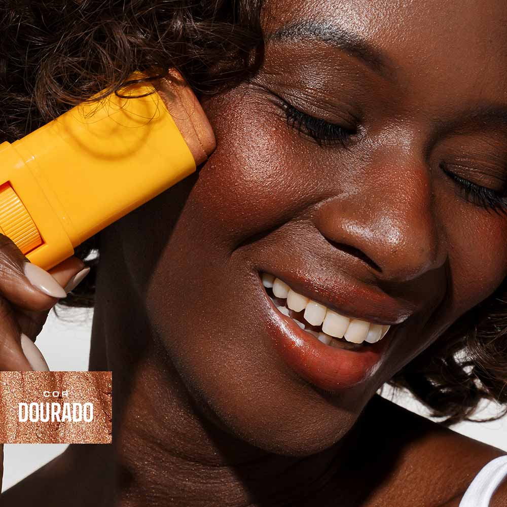 1. Aplique o stick diretamente sobre a pele e espalhe com o aplicador da sua preferência — pincel, esponja ou os próprios dedos.