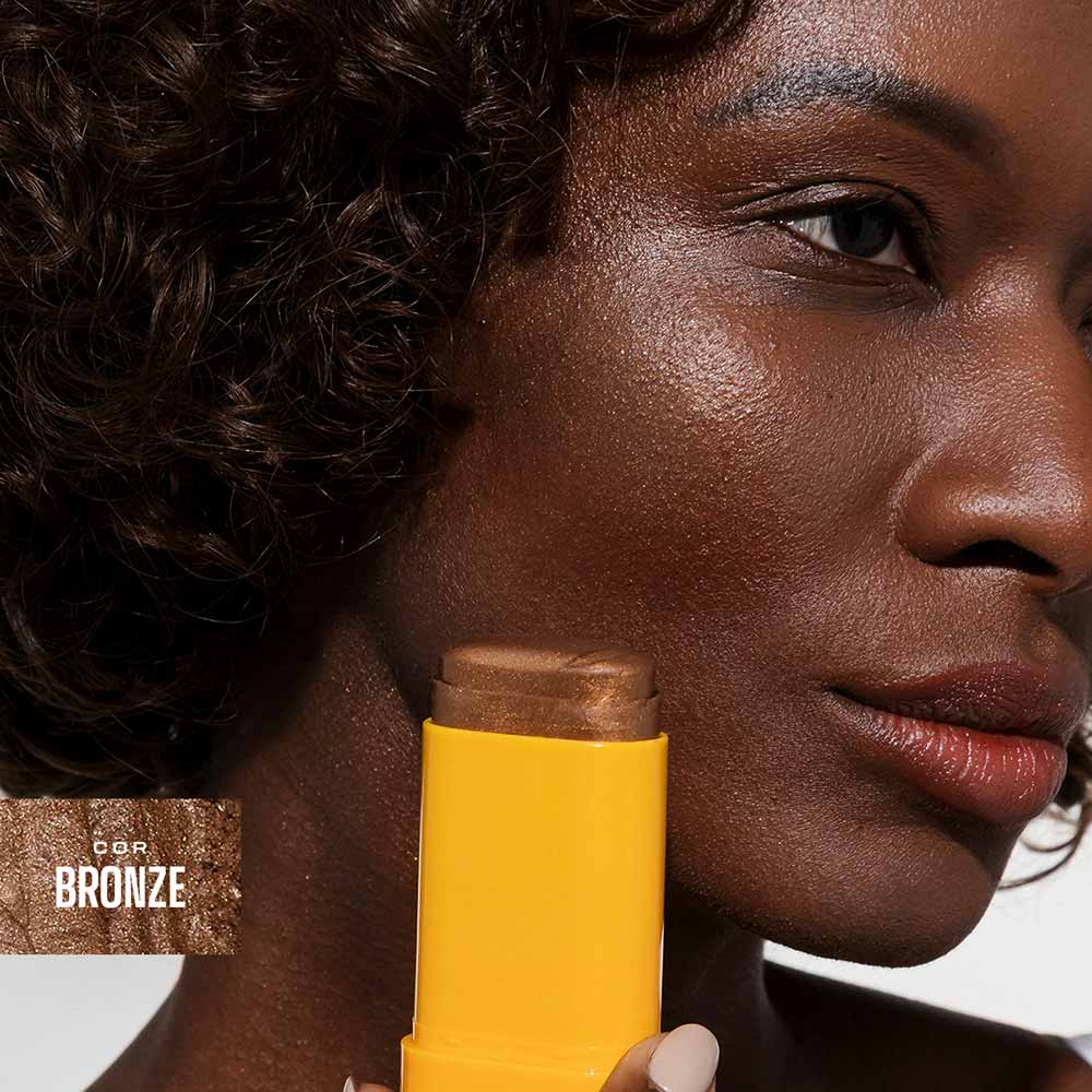 1. Aplique o stick diretamente sobre a pele e espalhe com o aplicador da sua preferência — pincel, esponja ou os próprios dedos.