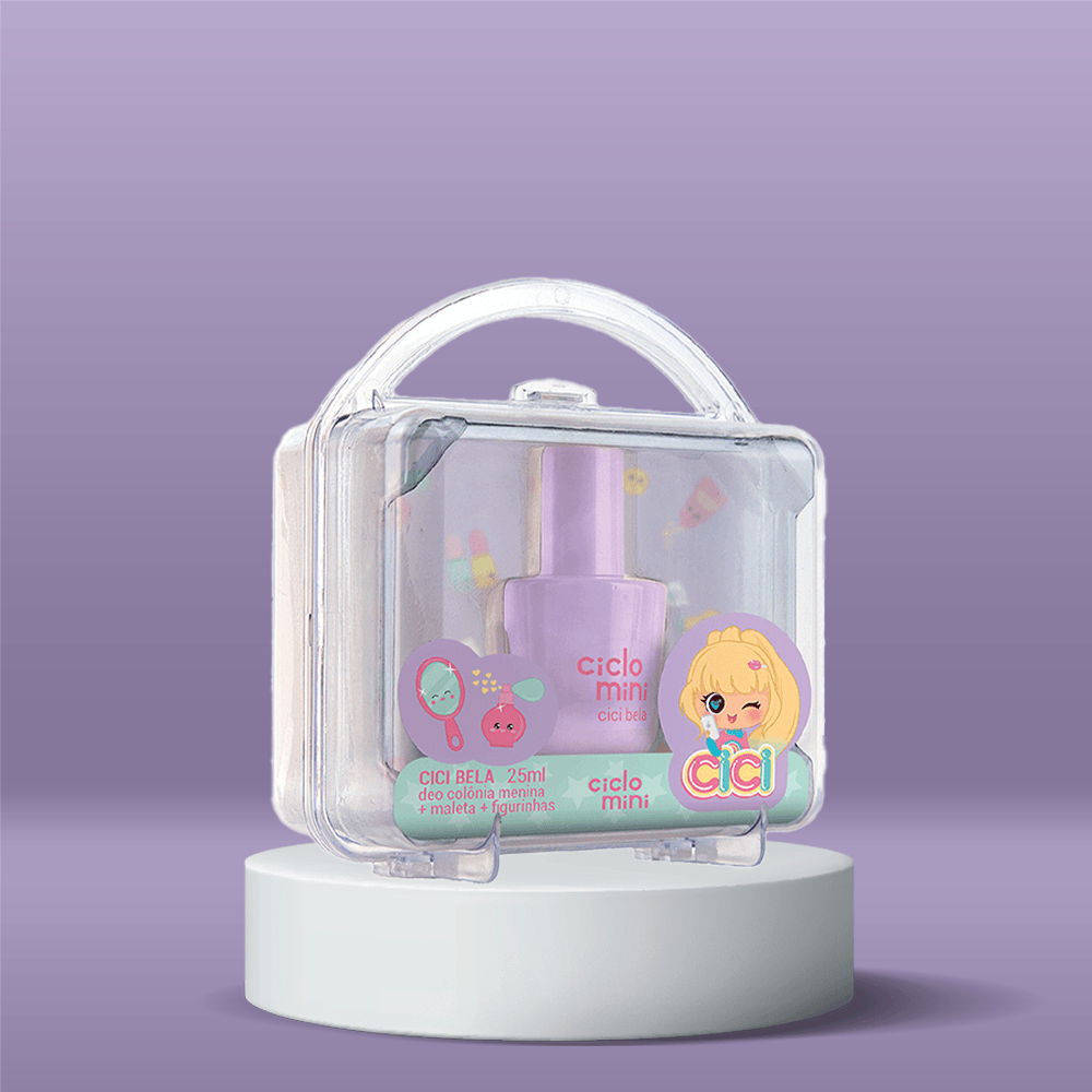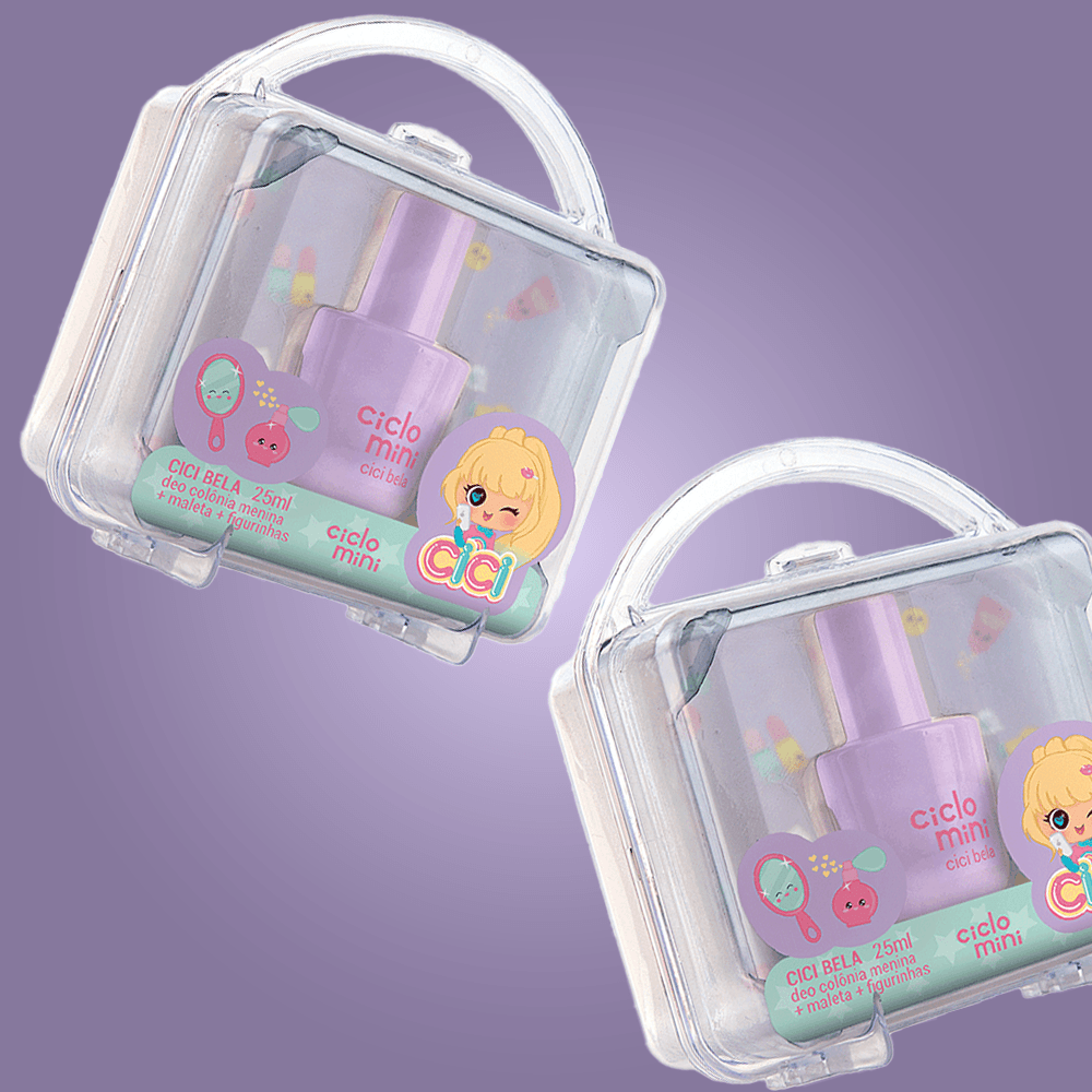 A Cici Bela é para meninas super vaidosas e antenadas, que amam selfies, estilo e se sentir conectadas. A maleta vem com 1 deo colônia e 1 cartela de figurinhas exclusiva, para colecionar momentos e criar histórias divertidas com as amigas.