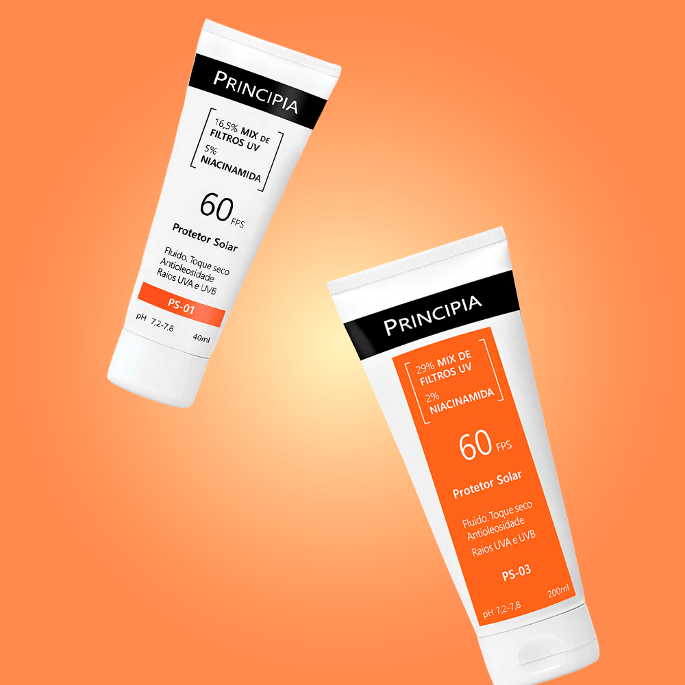 Ideal para pessoas interessadas em cuidados corporais, o Kit Protetor Solar Principia FPS 60 é indicado para todos os tipos de pele, especialmente as propensas à acne.