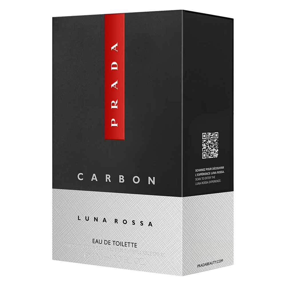 O perfume masculino Luna Rossa Carbon de Prada forte como uma rocha, fresco como o ar, reúne fragrâncias botânicas e metálicas , fazendo com que o perfume seja muito especial. É um perfume masculino aromático fougére. Possui nas notas de topo as fragrâncias da Bergamota e Pimenta, nas notas de coração encontram-se a Lavanda, Tintura de Solo e Notas aquosas, Notas metálicas e Carvão. Nas notas de fundo estão presentes o Patchouli e Ambroxan. Um perfume forte, feito para o homem decidido. Luna Rossa Carbon é uma fragrância que deixa sua marca por onde passa, pois seu aroma é único fresco e forte. A criação desse perfume teve inspiração na inovação, na modernidade e no dinamismo masculino, tudo feito para criar um equilíbrio e uma fragrância perfeita. A sensualidade e o charme são os pontos principais dessa incrível fragrância de Prada. Frasco: Inspirada na linha Prada Luna Rossa, mas usa materiais bem diferentes. Tem a profundidade visual do carvão, mas com texturas complexas. A base é negra, tem a luminosidade, graças a textura suave do veludo orgânico. Vidro preto e transparente, algo que parece puro, refinado e moderno. É cortado por um vidro vermelho, que dá um tom mais inovador. É arquitetônico e imediato, trazendo equilíbrio.