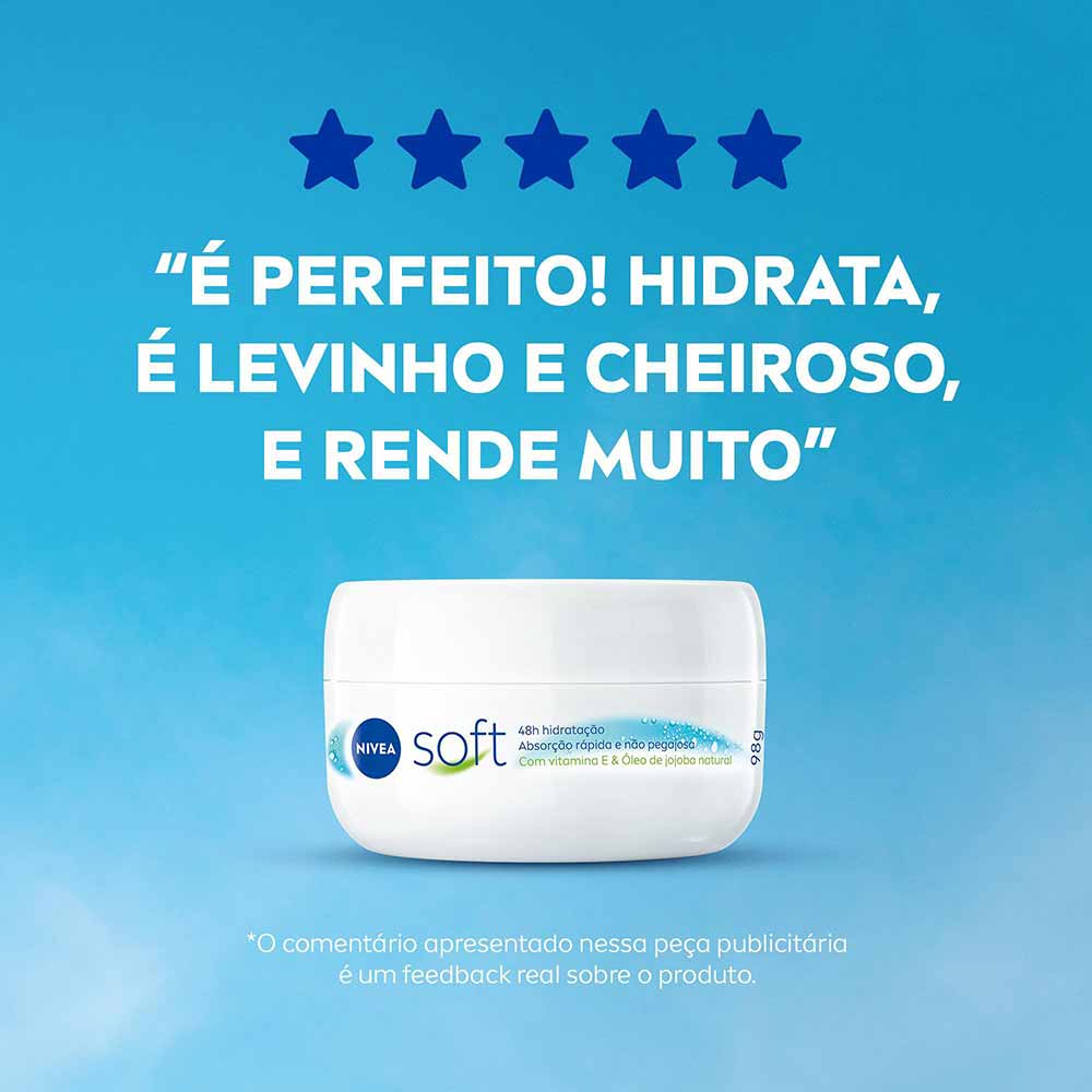 Além disso, NIVEA Creme Hidratante Soft é dermatologicamente testado e possui um pH neutro, o que o torna seguro para uso em diversos tipos de pele.