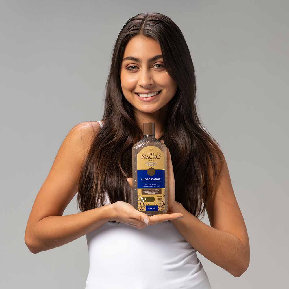 A linha Tío Nacho® Engrossador demonstrou clinicamente sua eficácia para conseguir um cabelo com mais volume. Com sua exclusiva combinação de geleia real com capilgross e extratos de origem natural, aumenta a espessura do cabelo e evita a queda por quebra, para um cabelo mais forte, volumoso e saudável.