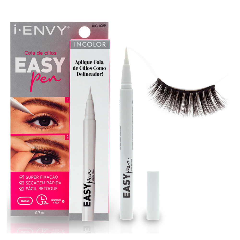 Aplicar cílios postiços, nunca foi tão FÁCIL!!! A Cola de cílios postiços inteiriços Easy Pen é perfeita para todas as pessoas, até mesmo para quem sempre quis usar os cílios e tem dificuldade de usar a cola. A opção incolor fica invisível e resistente a água, trazendo um acabamento perfeito, sem se preocupar com o delineado ou até mesmo para usar com um delineado colorido. Benefícios: • Super Fixação • Secagem Rápida • Fácil Retoque • 12h de duração • Resistente a água • Fácil Aplicação • Não deixa grumos Modo de Usar: Certifique-se que as pálpebras estejam limpas e secas, sem umidade ou maquiagem. Começando com um olho, aplique o Easy Pen na linha natural dos cílios, como um delineador normal. Antes que a cola seque em sua pálpebra, aplique imediatamente os cílios i-ENVY ao longo da linha aplicada. Empurre suavemente para ajustar a base dos cílios. Repita no outro olho. Contra Indicação: Mantenha fora do alcance das crianças. Use somente conforme indicado. Evite contato com os olhos. Em caso de irritação, lave imediatamente com água morna. Não use se estiver com sintomas ou sofrendo de inflamação ocular ou conjuntivites. Sobre a KISS New York Criada em 1988 nos Estados Unidos, a KISS, empresa chamada de KISS New York no Brasil, atua em 108 países ao redor do mundo, no desenvolvimento, na produção e na comercialização de produtos de beleza. Pioneira em trazer para o consumidor final cuidados profissionais para as unhas, a marca é líder em vendas de unhas e cílios postiços. No Brasil desde 2009, a empresa ampliou seu portfólio de produtos e conta também com linhas de nail art, cuidados para as unhas, aparelhos e acessórios para os cabelos e maquiagem. Com produtos que atendem as necessidades da mulher real e independente, a KISS New York tem como filosofia “força, modernidade, confiança, paixão e inovação”.